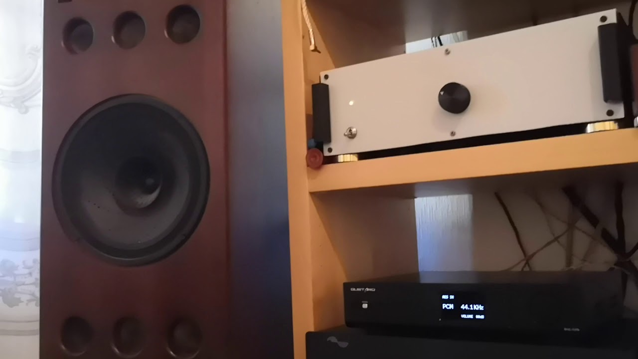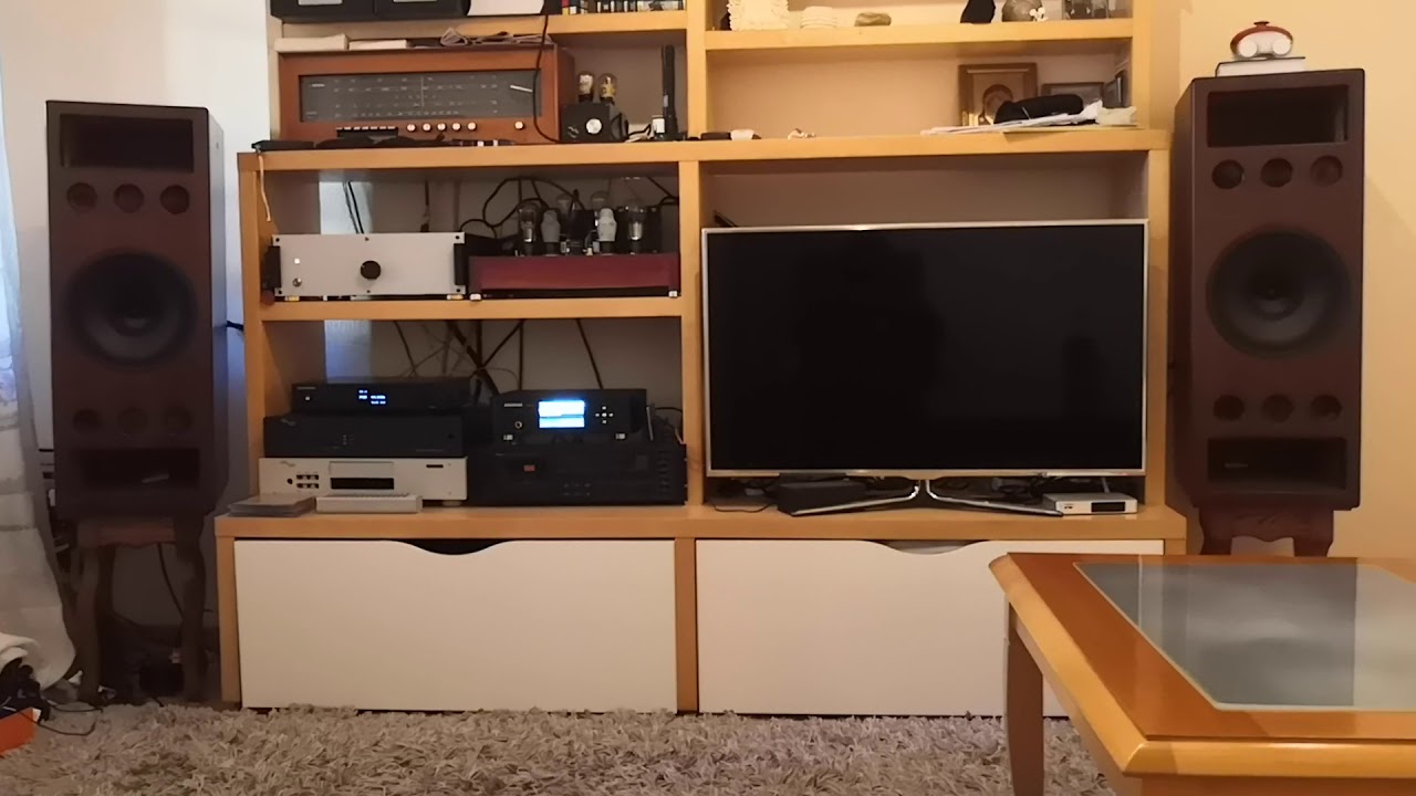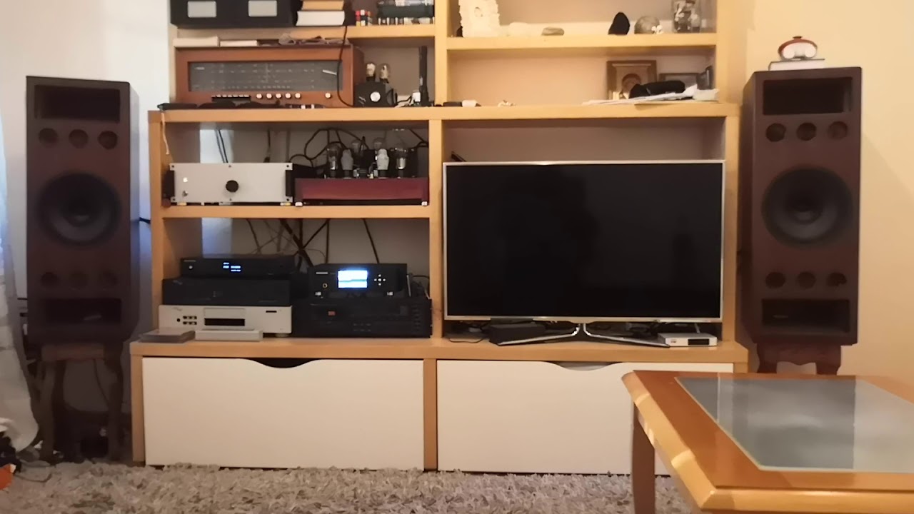 Подробнее о моей системе можно прочитать в моем профиле. В кратце, у меня однотактное триодное усиление (пред + мощник) с выходом на полтора ватта. Акустика широкополосная бумажная высокой чувствительности в многослойных корпусах с двойным рупорным резонатором. Все изделия авторские. Кабельное хозяйство моего производства.