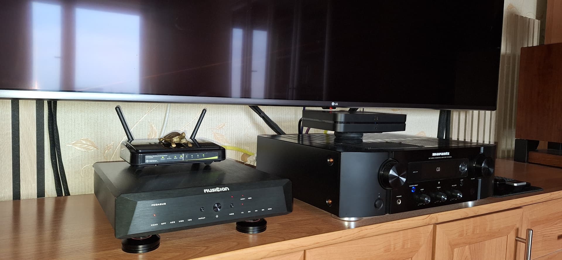 И начал я перебирать компоненты системы и перепроверять их нештатные системы демпфирования в поисках “Сруля”. Ну и почти сразу ‘вышел’ на ЦАП удалив из под его трех штатных конусных ножек красивые демпфирующие ‘пятаки’ Audio Bastion, купленные на Али. Покупал для красоты, да и на звук, как мне казалось ранее они не влияли.