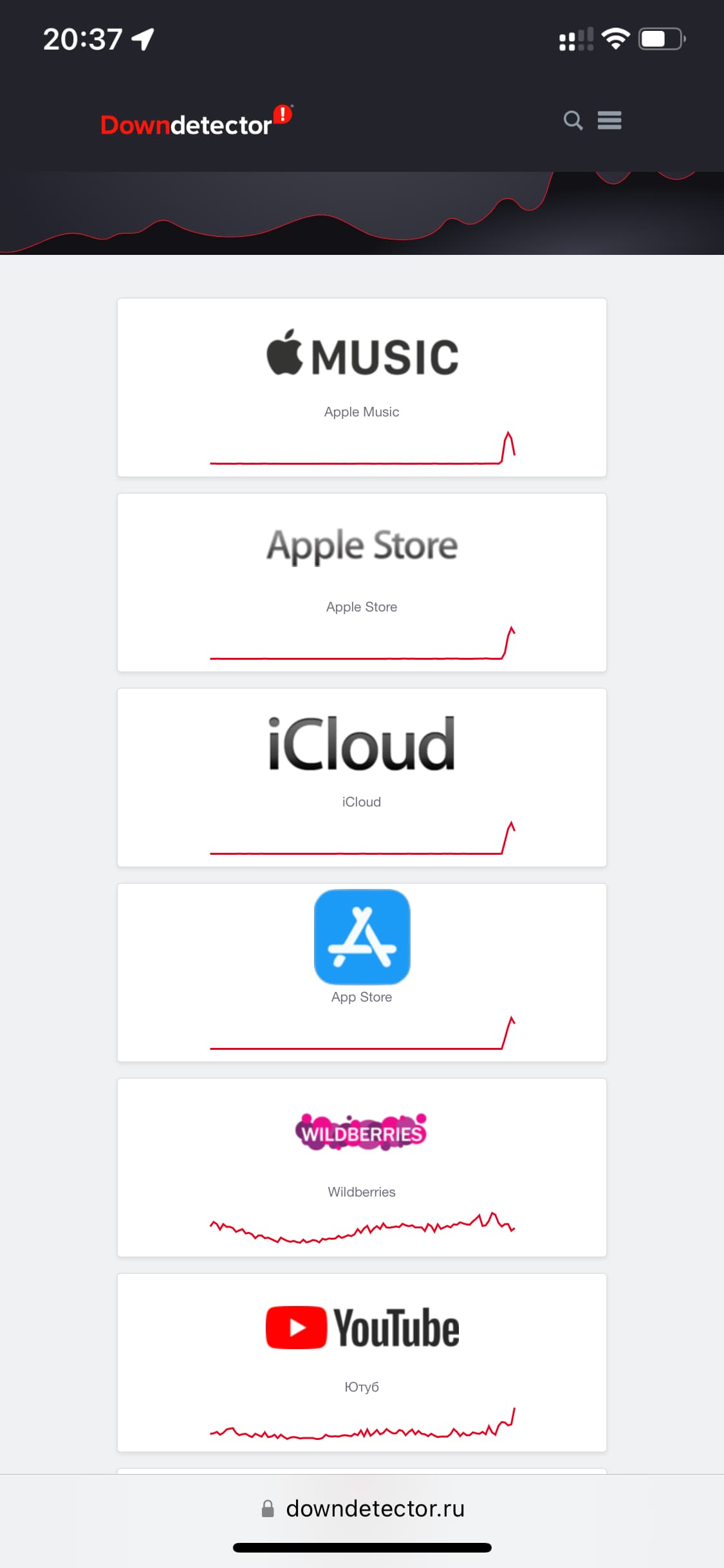 Не только Эппл, много сервисов полегло, ну у нас это, в штатах что-то.
