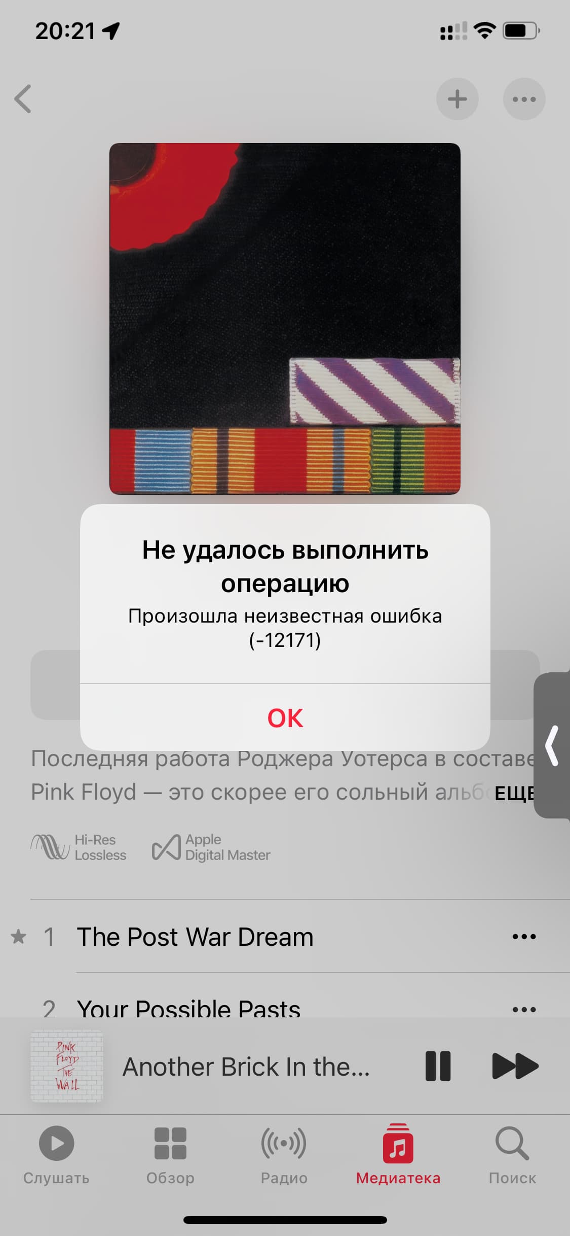 Песни из альбома The Dark Side of the Moon не воспроизводятся.