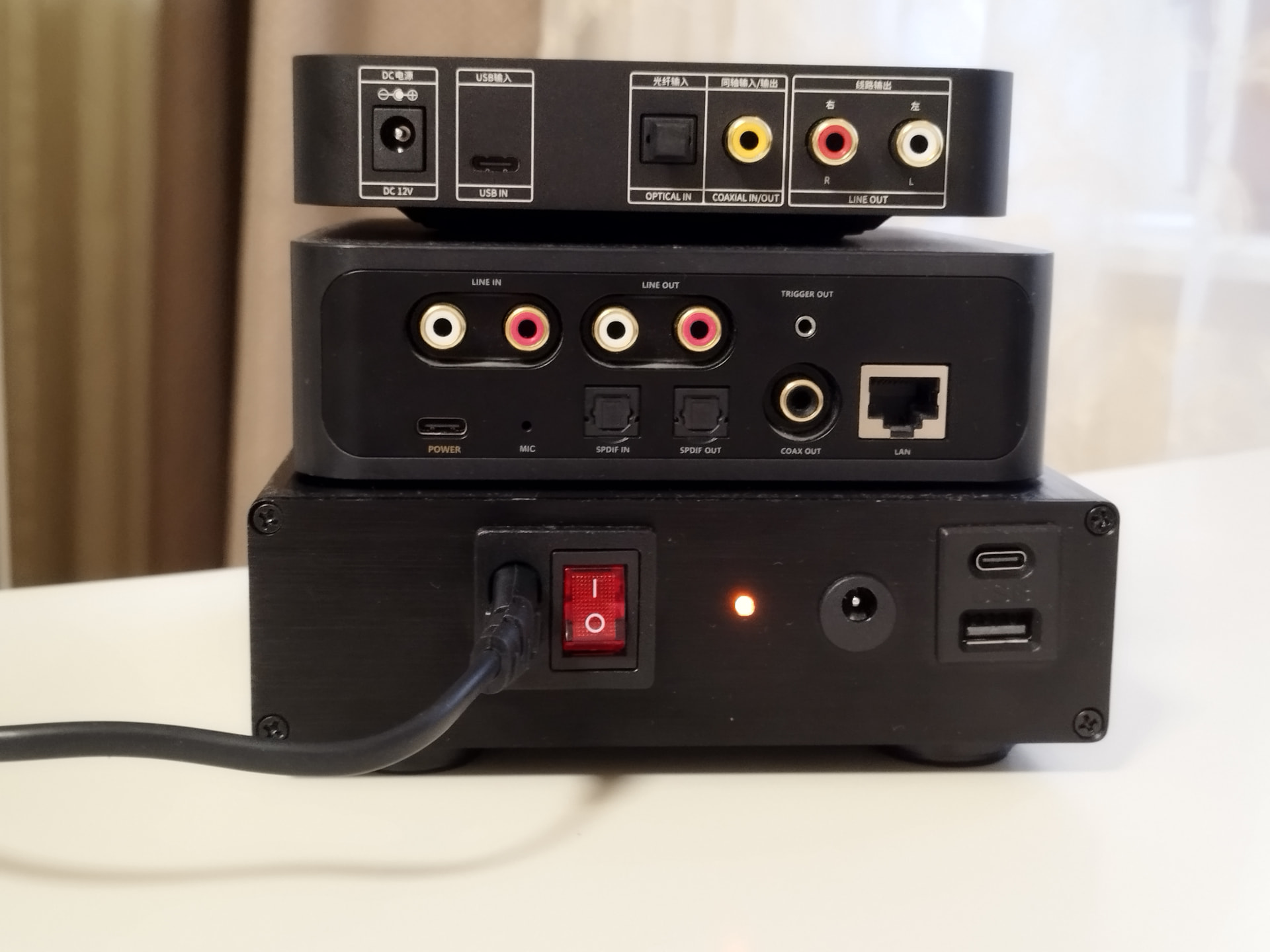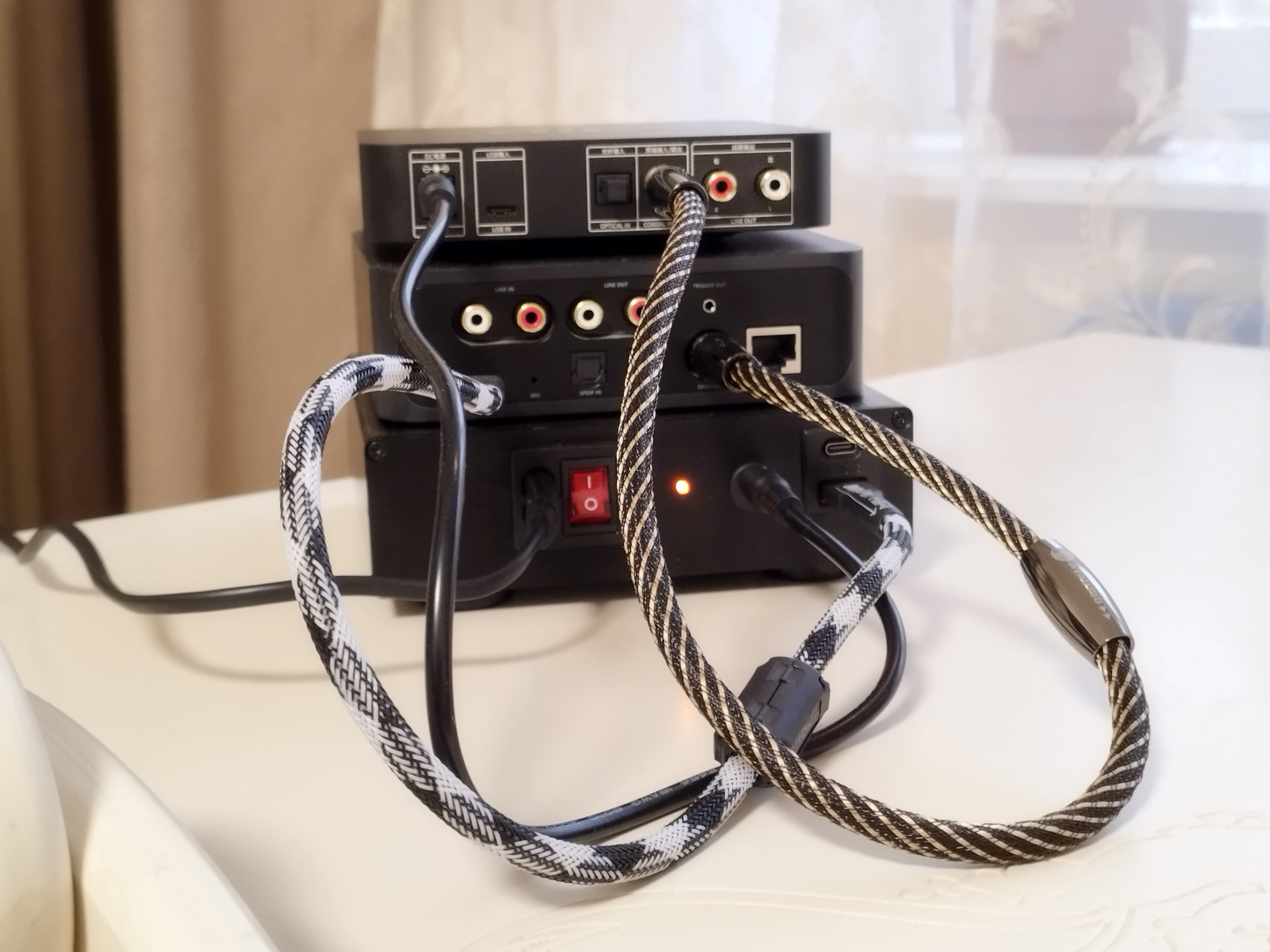 - Комплект высококачественных соединительных кабелей (USB для питания Wiim, DC2.5 для питания Fiio, Coax SPDIF)