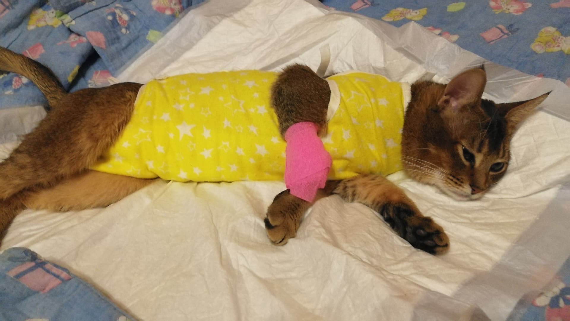 Сожрал неопределяемый УЗИ предмет. Порезы кишечника в 5 местах не позволили достать п/проп нитку(и), которая была намотана на языке. В итоге устранили.