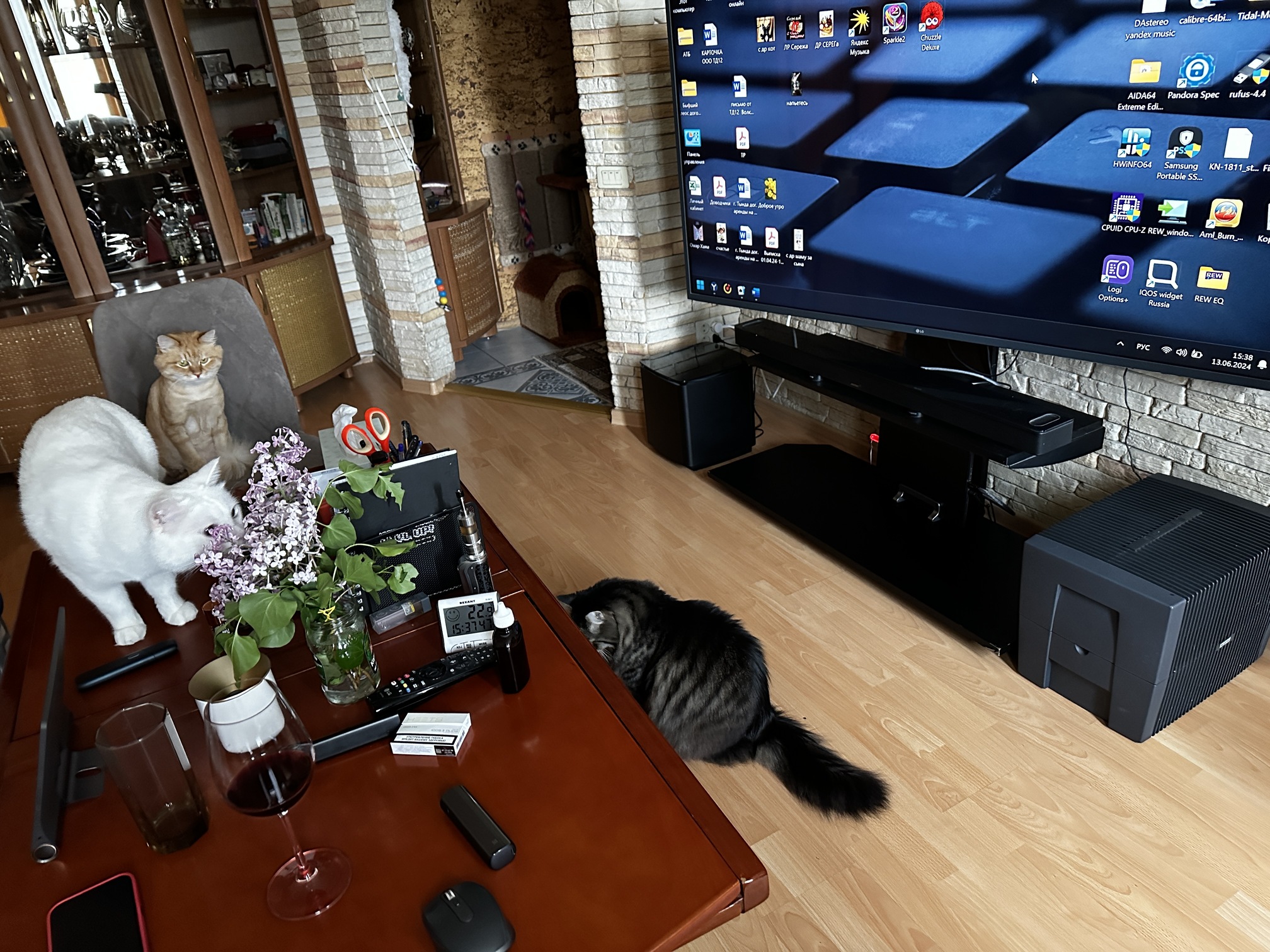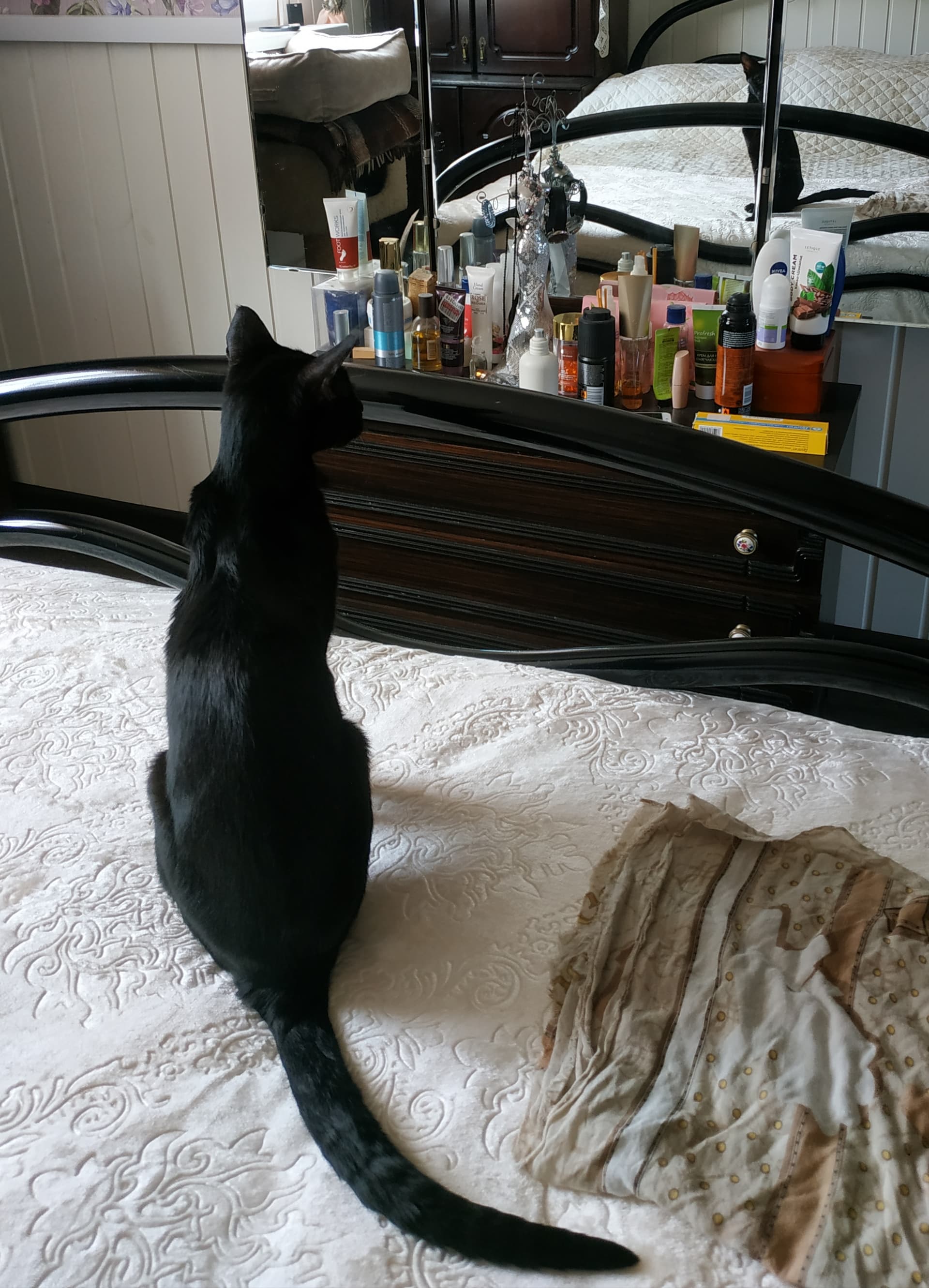 а моя леди его как-то не признает. лежит в коридоре изнывая от жары, ищет сквозняки, но они тоже 32 градуса сейчас… я заношу её в зал где 24, укладываю рядом на диван. она прям смотрит на девайс на стене, источающий прохладу, и валит из комнаты