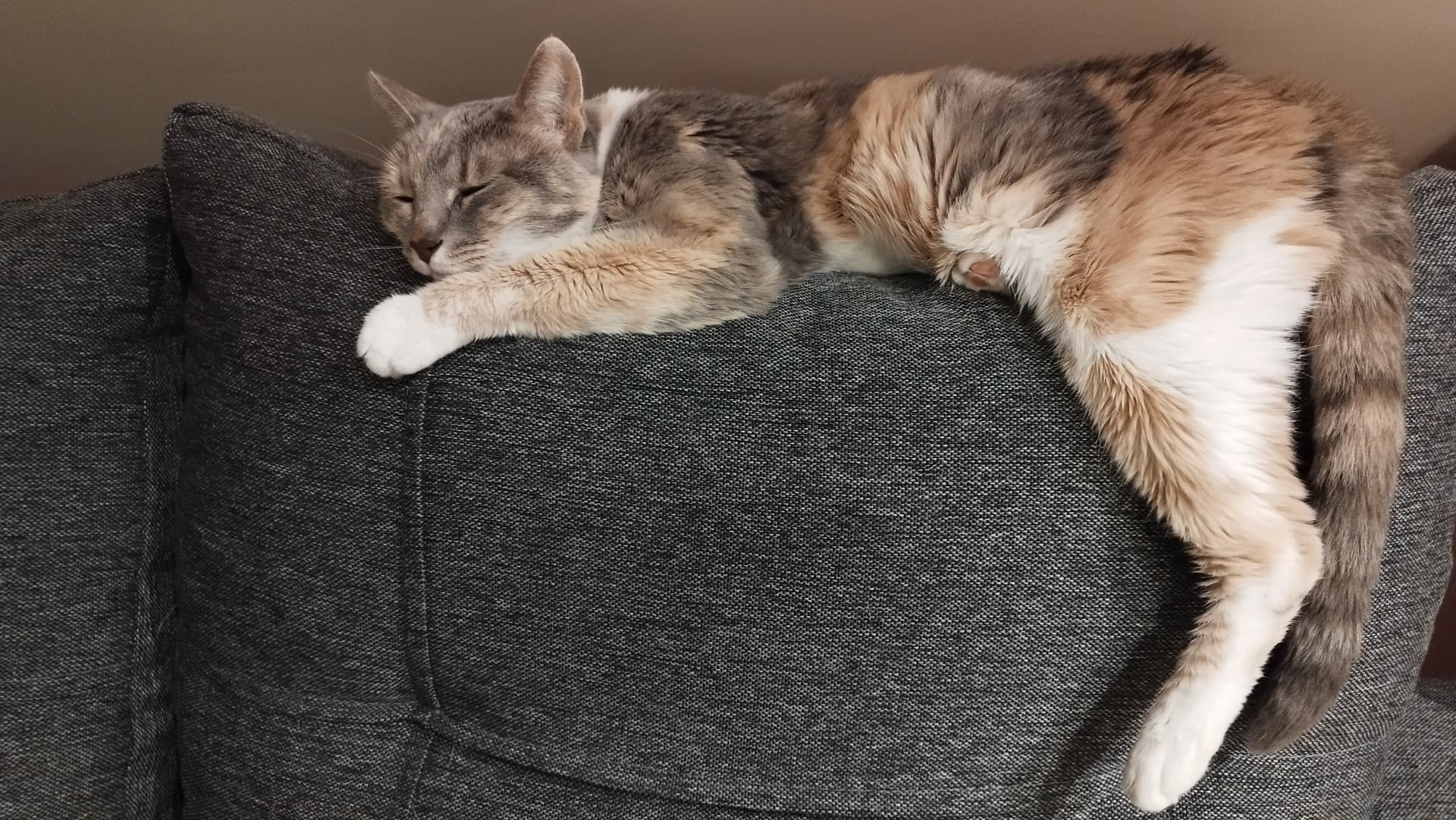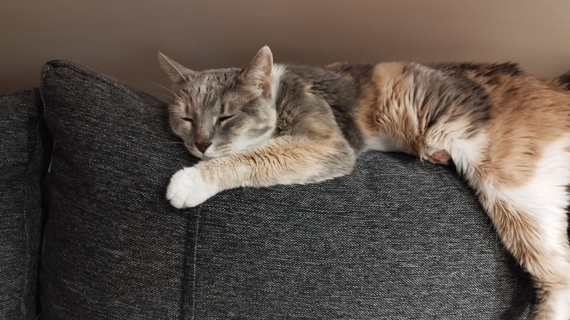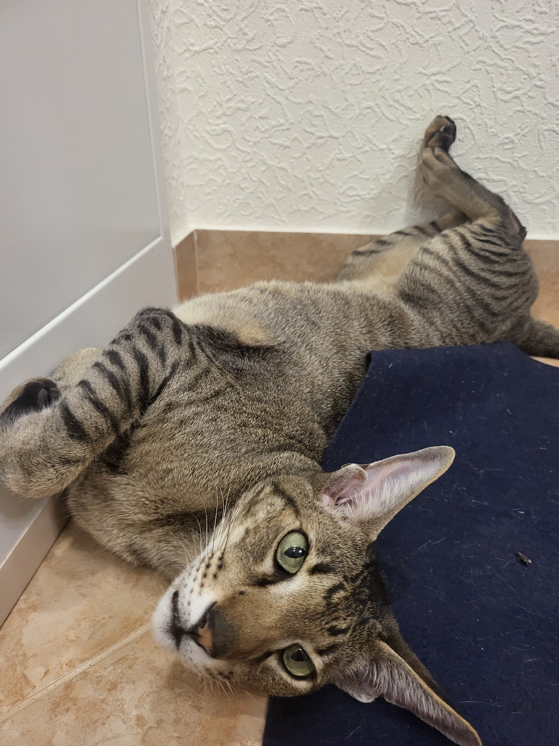 Я бы дал год. Егоза, зубы идеальные, шкура и кости, мяса нет. Фотографировать невозможно, пока достал телефон она уже на соседнем участке или в другой комнате. В сочетании с моим старым смартфоном фототворчество становится затруднительно. Ну, что есть…