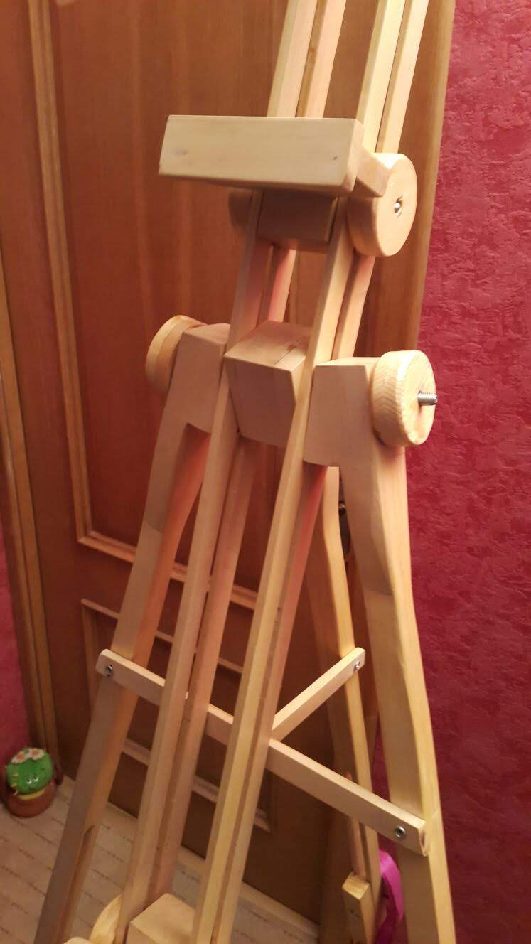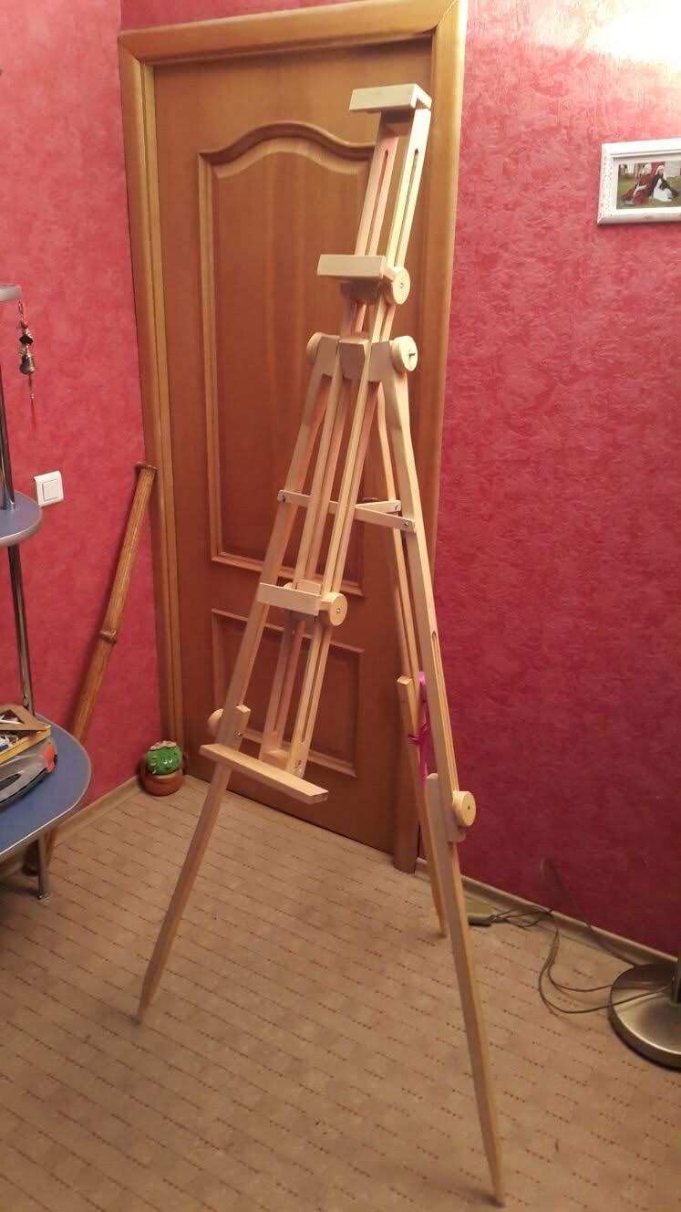 Когда дочка рисовала, попросила сделать мольберт - легкий, чтобы складывался и главное устойчиво стоял на любой поверхности когда она будет ходить на этюды.
