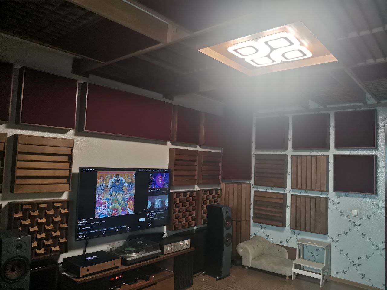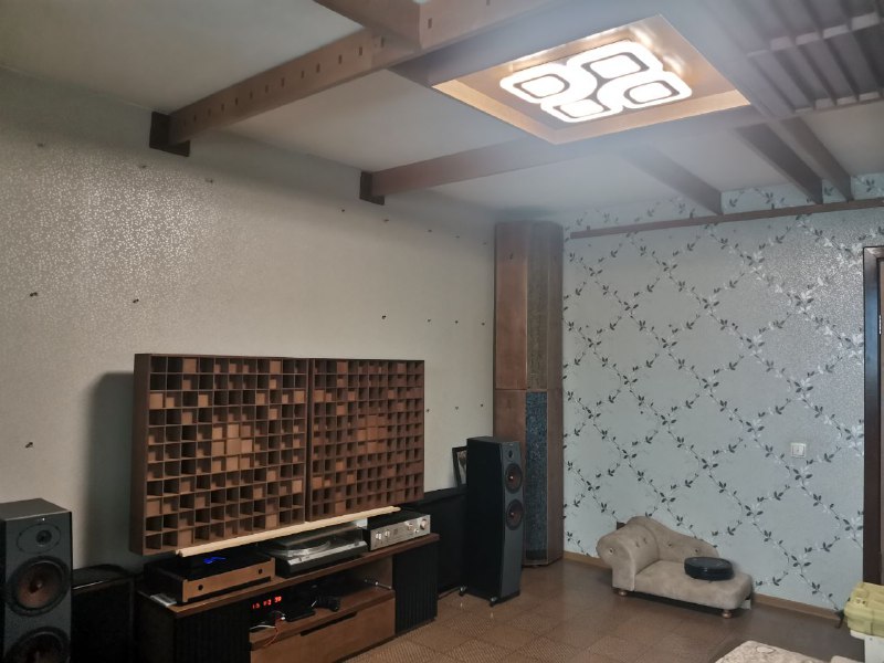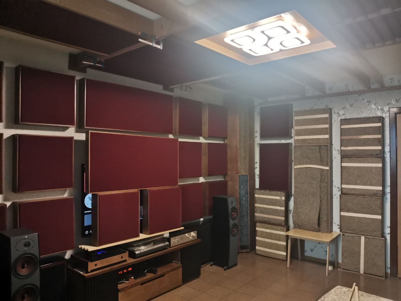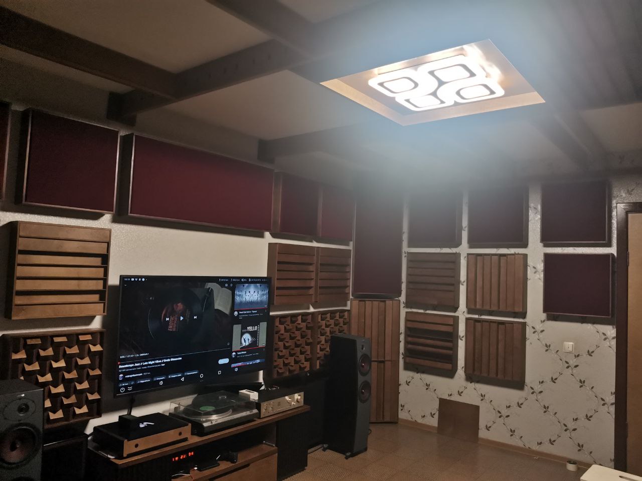 Очень бросилась в глаза эффективность диффузоров от гула. Может потому что во всех диффузорах стой ваты сзади. Но скорее всего это свойство рассеивания. В пустой комнате после выключения звука, он стоял в воздухе какоето время, очень непривычно.