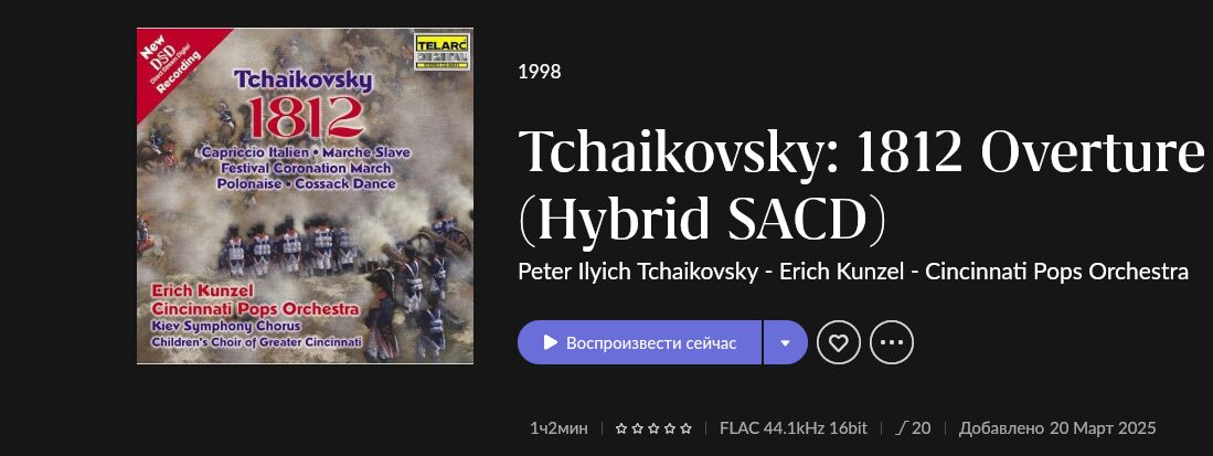 - Чайковский: Увертюра 1812 года. Сборник от Telarc