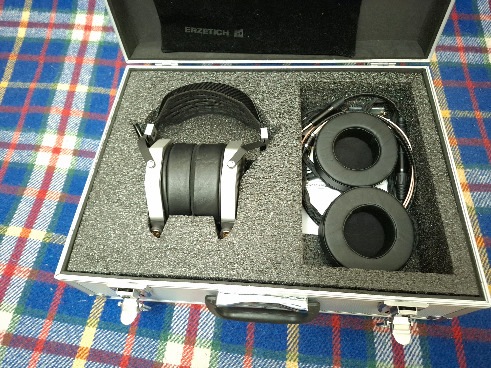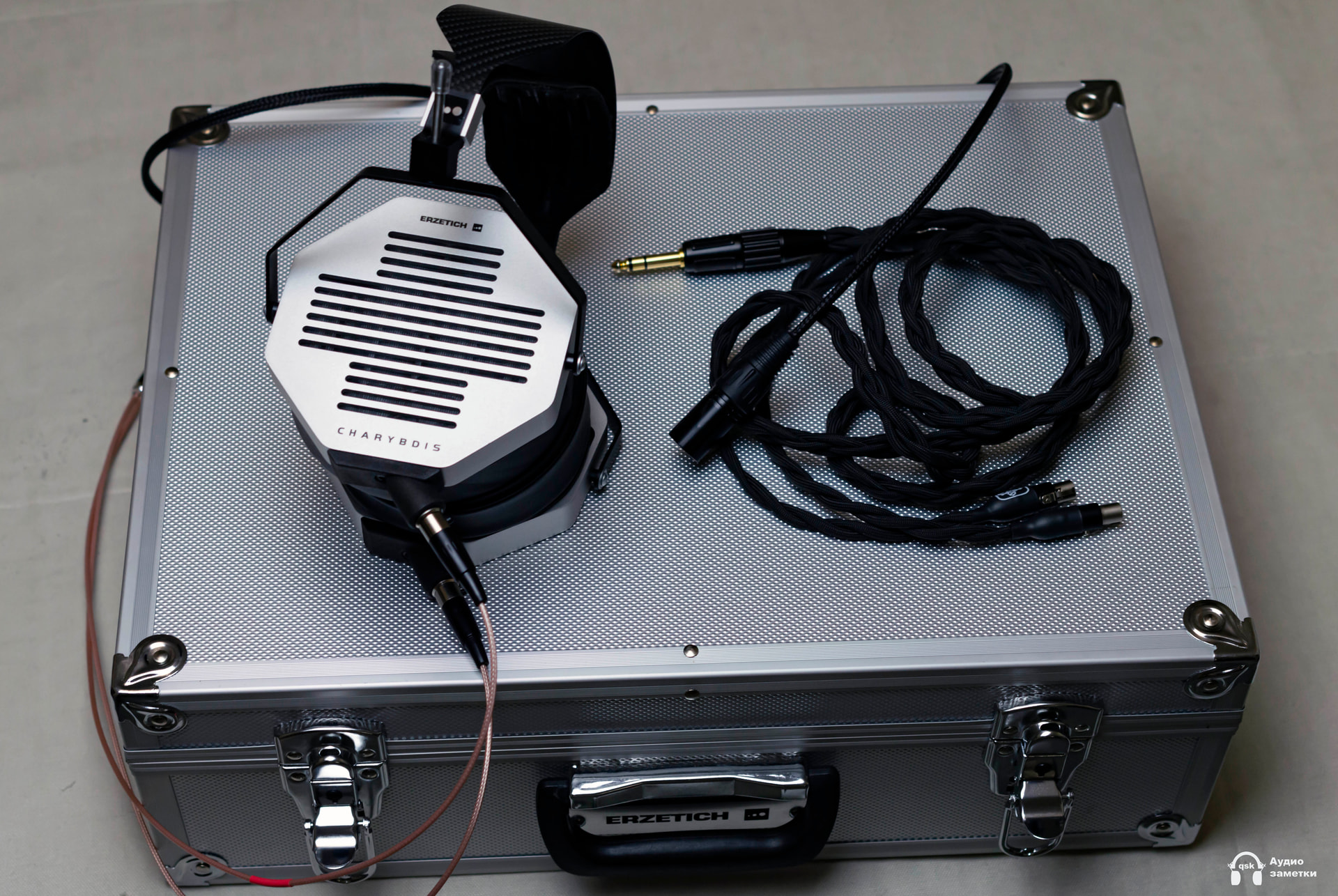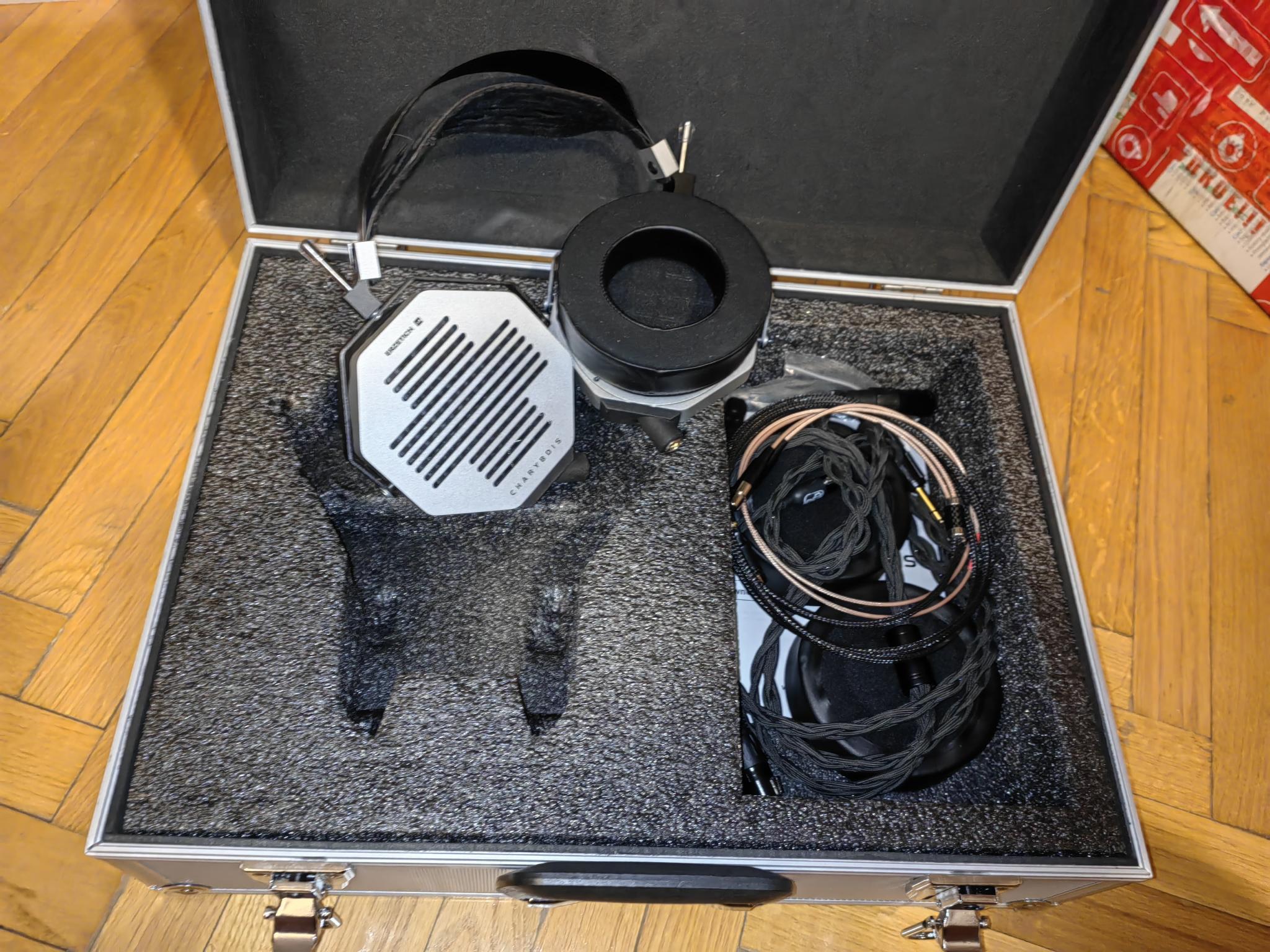 Наушники Erzetich Charybdis приехали в большом кейсе, практически в чемодане. Кейс легкий и удобный. Места внутри хватает и для наушников, и для кабелей, и для запасных амбушюров с запасом. Но при этом он такой большой, что требует особо уважительного к себе отношения - в смысле выделения какого-то места для хранения такого гиганта. Если бы габариты были поменьше, было бы проще его пристроить.