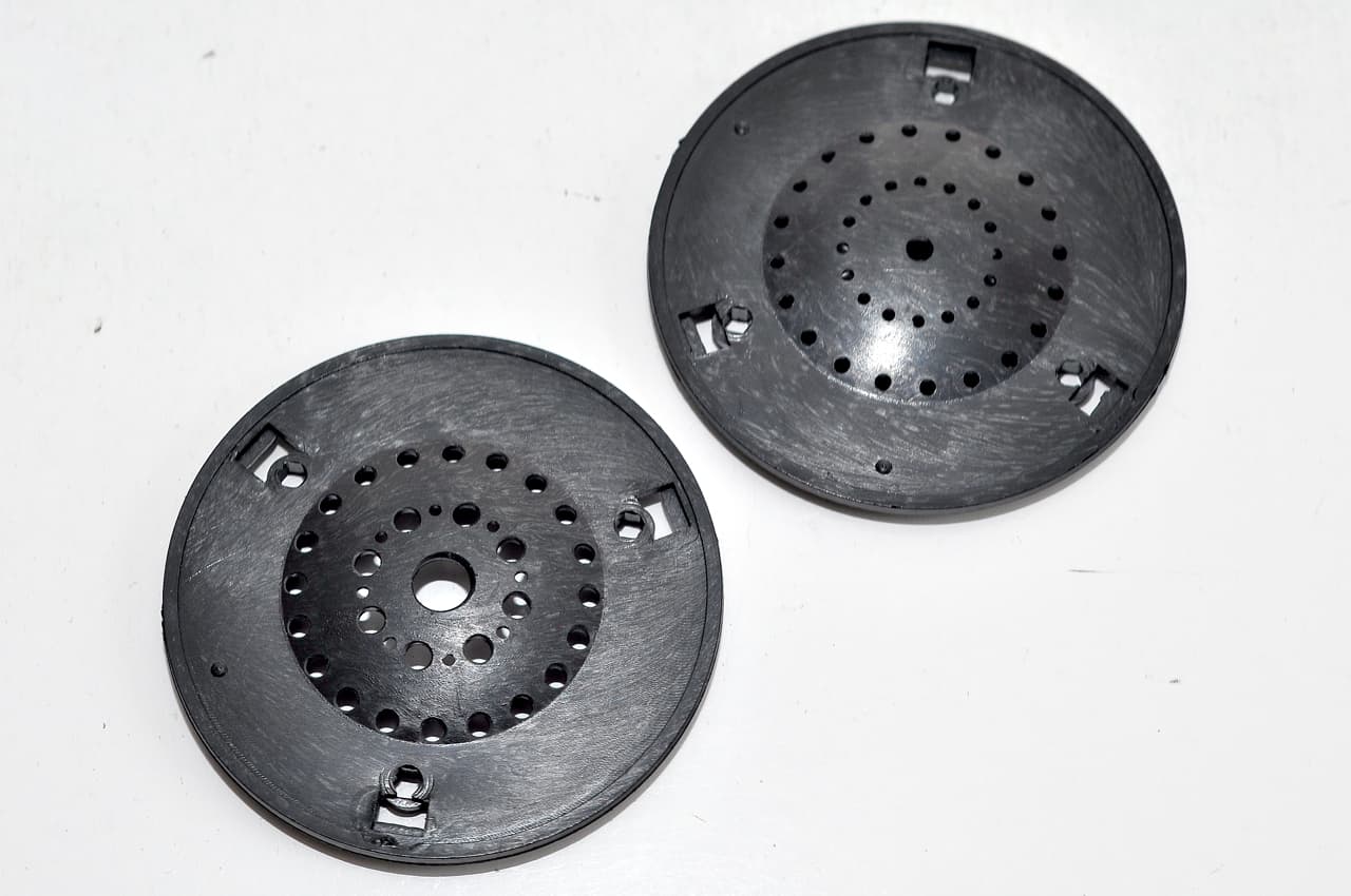 Первым делом начался поиск амбушюров с нужным мне “звучанием”. Сначала появились велюровые. С ними удалось получить прибавку к басу относительно поролоновых экземпляров (коих у меня теперь три разных размеров). Но бас получился немного “рыхлым”, и общее звучание хоть и прибавило основательности, но стало мутнее.
