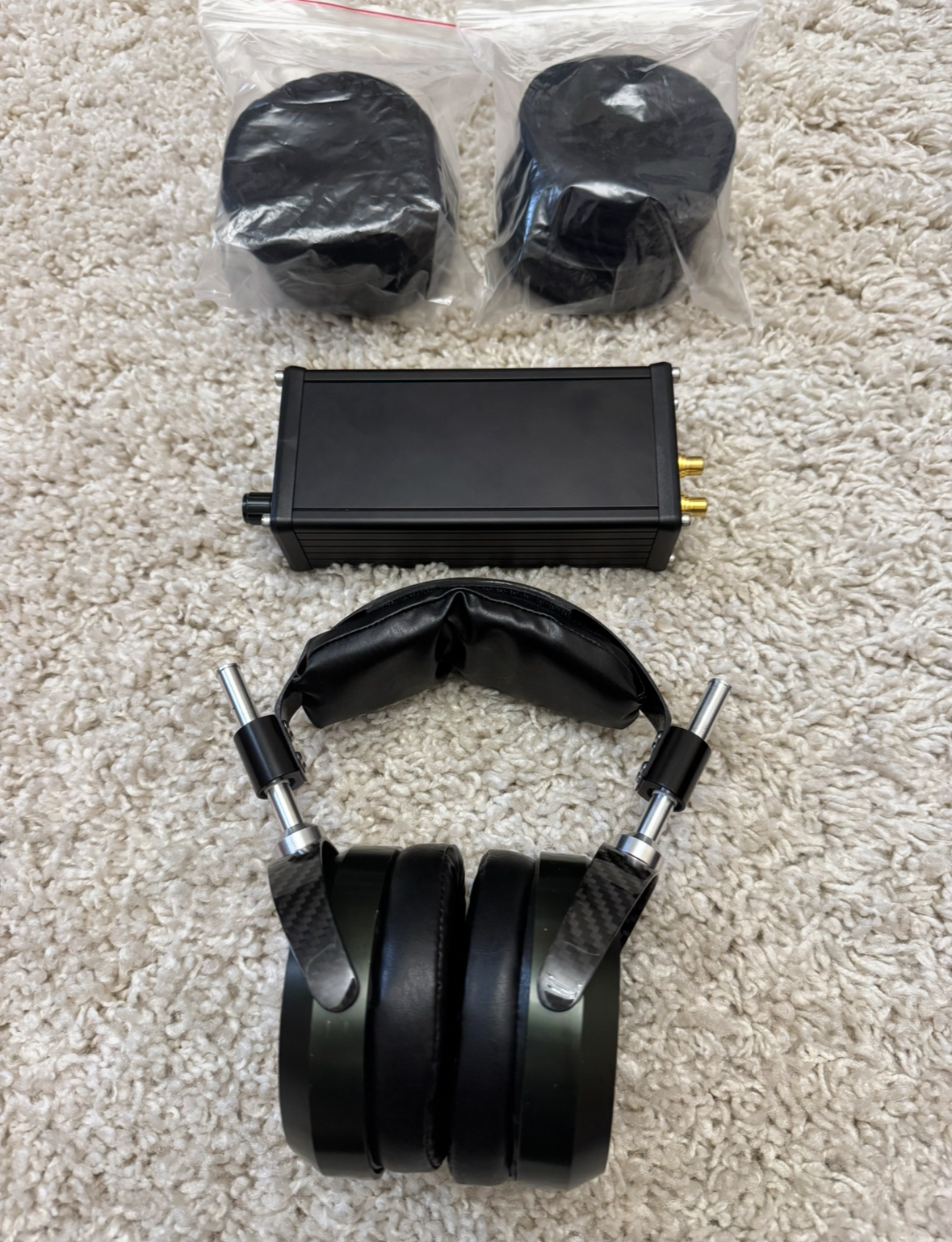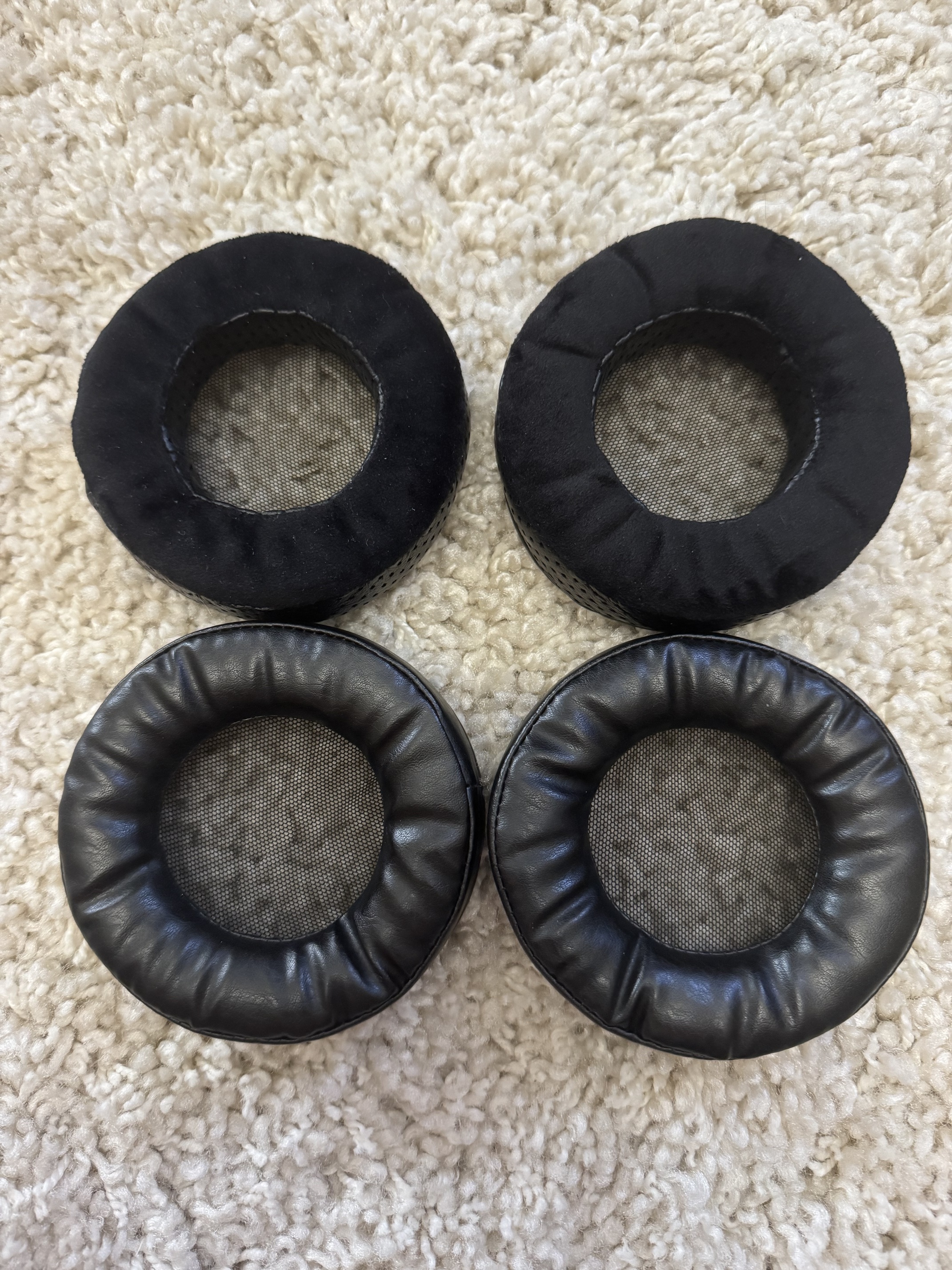 Амбушюр в комплекте три пары, пока стоят велюровые, но надеюсь и другие послушать. Мелкие сколы краски и точки на наушниках имеются.