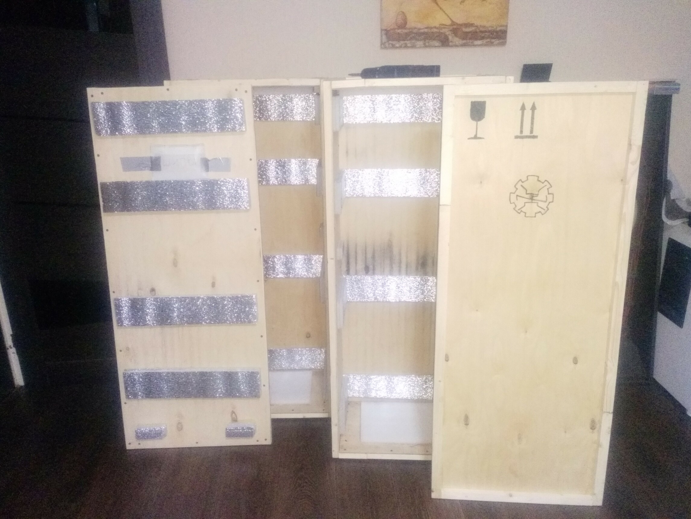В итоге получилось два ящика с габаритами 131см54см37см и весом 47кг каждый, меньше не смог