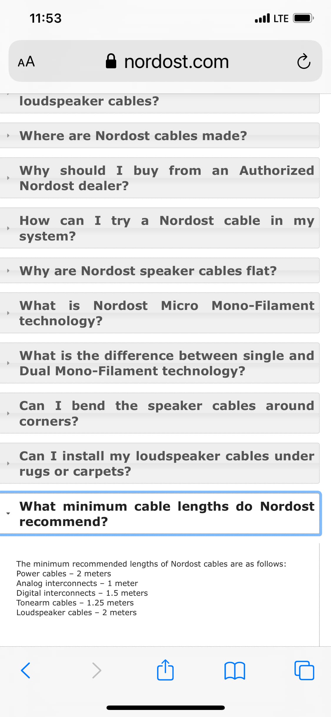 К сожалению это чистая правда. На себе проверено. Взял у дилеров два комплекта Нордост Frey2 и Tyr 2. Все кабели там были длинные от 2до 4 метров. В итоге в моей системе мне понравилось больше звучание Акустического Frey2 и Силового Tyr2. Так как Tyr2 силовой достаточно дорогой (304тыс.руб.1метр) я подумал что 1 метра мне достаточно. Когда получил свой комплект звук стал не такой как при тестировании, баса стало меньше. Долго думал в чем проблема. В итоге вспомнил слова дилера о том что нужно брать силовой 2 метра(