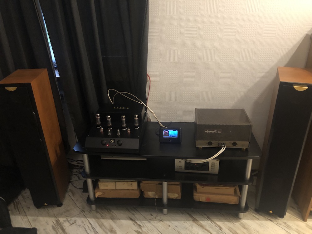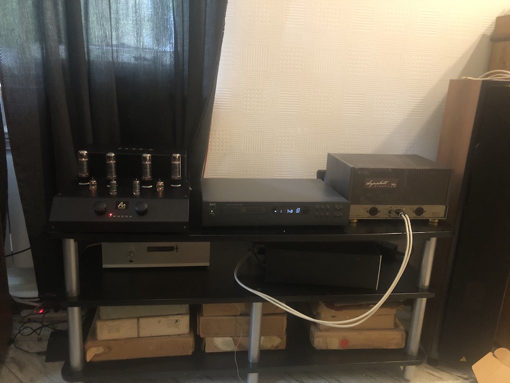 Настало время «столкнуть» два усила на EL34 лампах. Источником стал CD Nad, не самый прям CD, но что есть.