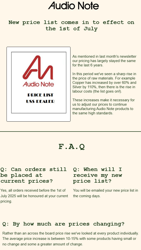 Хорошо что всем закупился что доставляет кайф от прослушивания музыки. Никакие повышения цен не страшны.