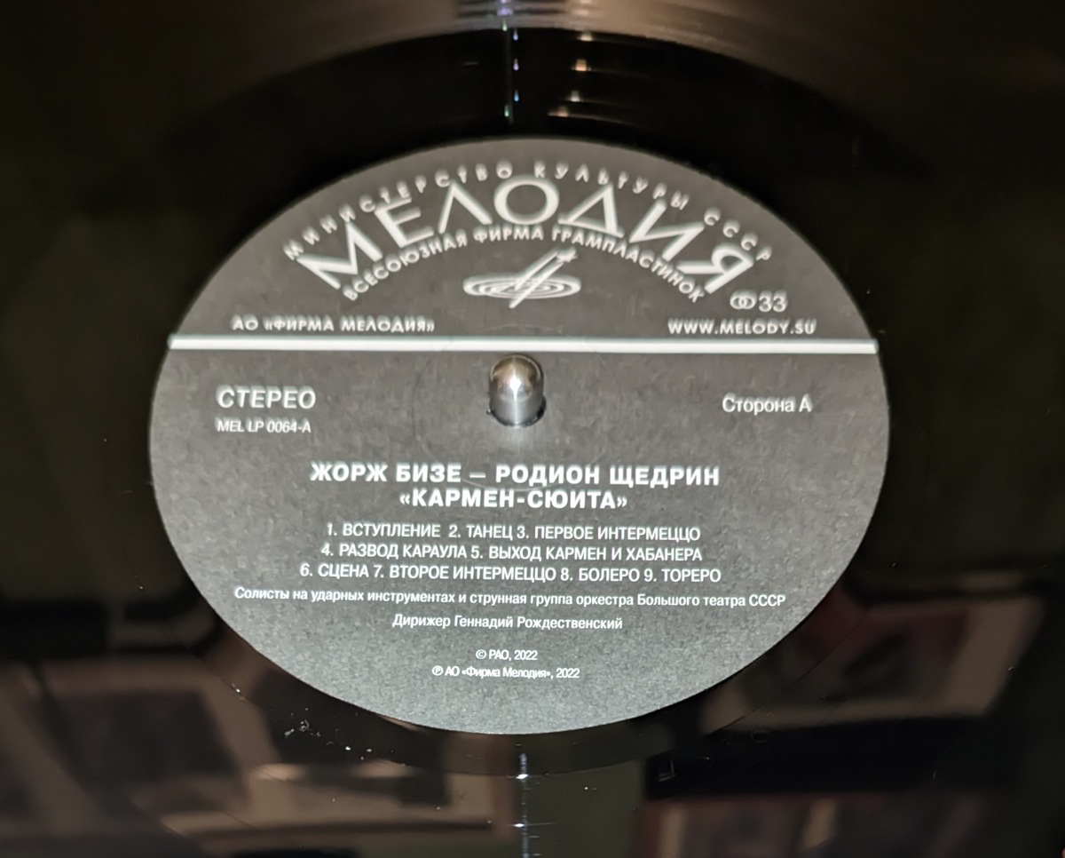 Сюита Кармен, переделанная Родионом Щедриным , очень интересная вещь в записи , а особенно в живую . Там такие партии ударных, что смотришь/слушаешь и волнуешься больше чем в опере )) Несколько раз дарил или ставил эту пластинку молодым друзьям , восторг .