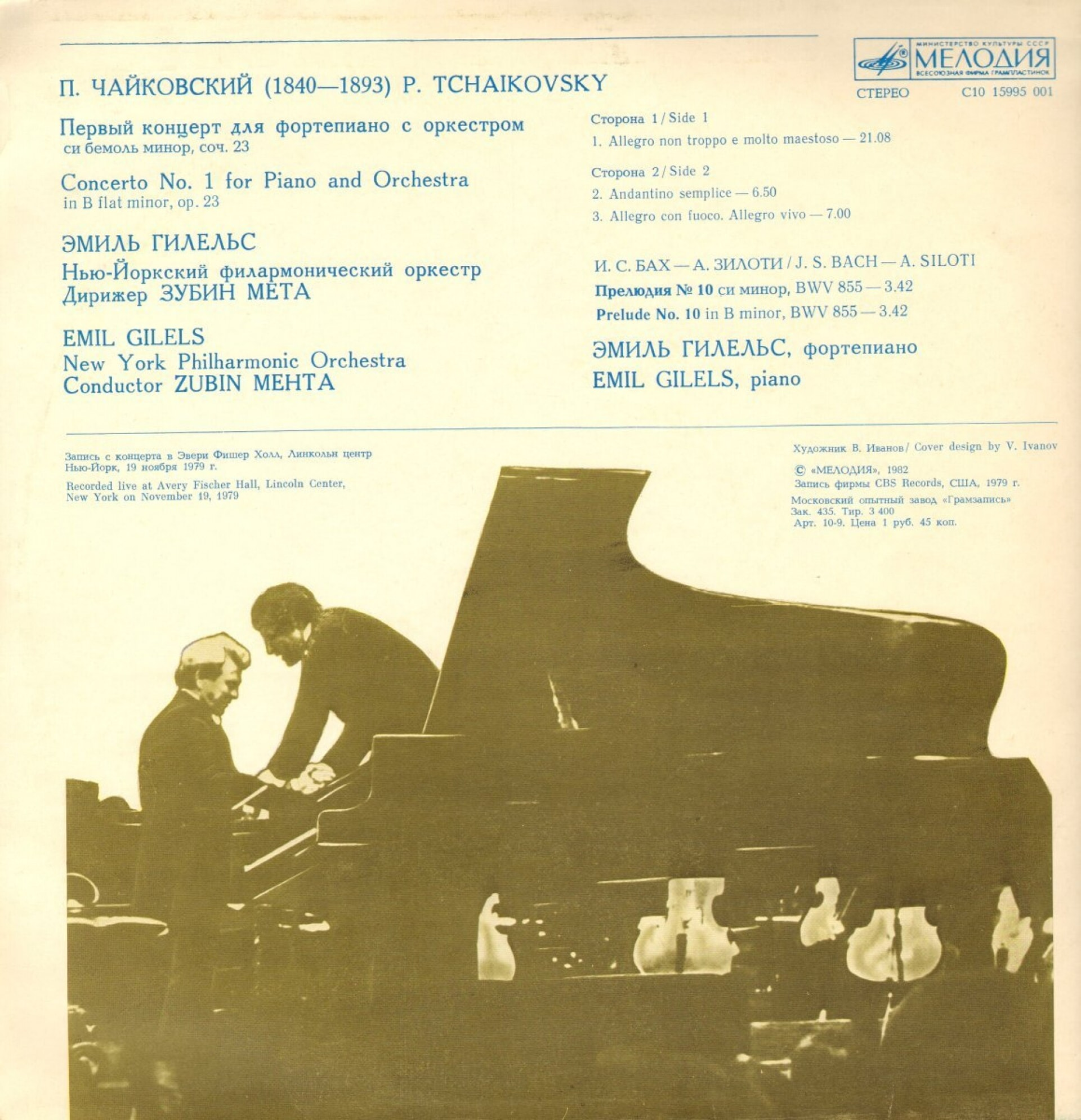 КОНЦЕРТ №1 для ф-но с оркестром. Соч.23 Си бемоль минор. Запись с концерта в Эйвери Фишер Холле (Линкольновский центр в Нью-Йорке) в ноябре 1979 года. Без объявления с аплодисментами.