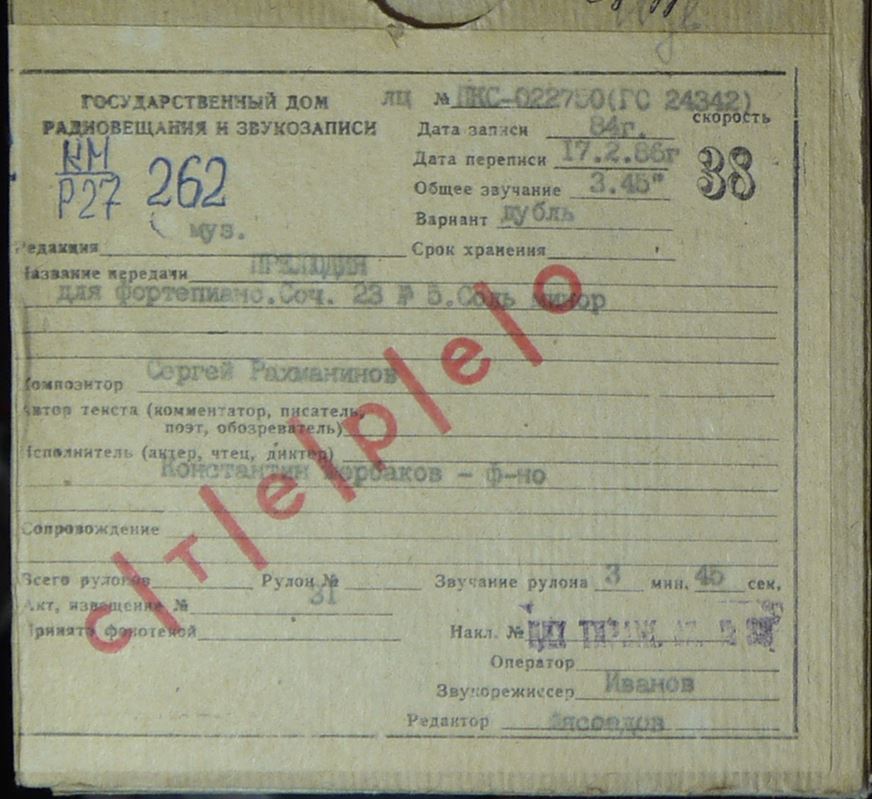 Запись 1979 г.