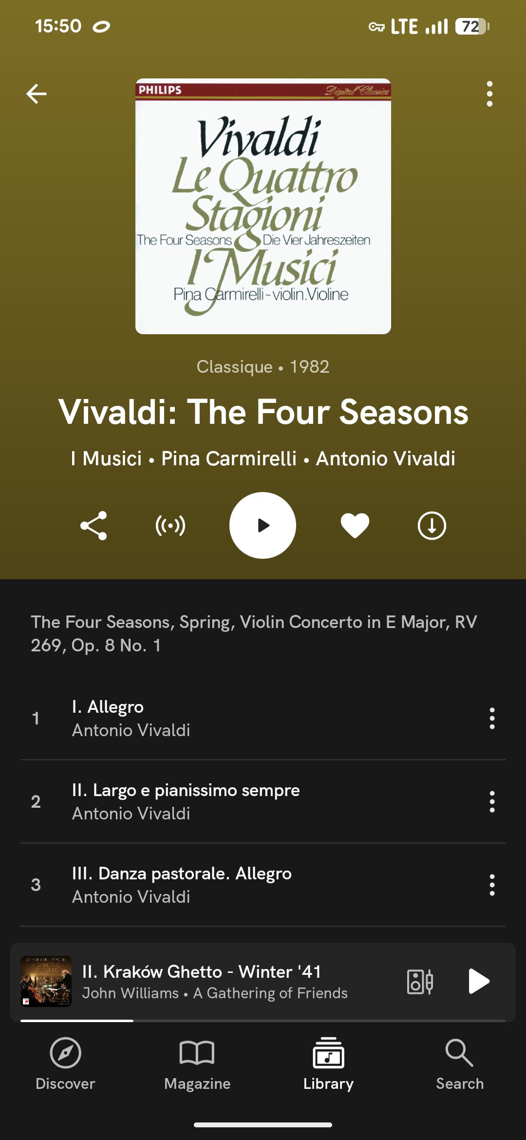 ASMF Новозеландский скрипач и слегка подвыпившие, если верить Лебрехту лондонские музыканты. Энергично, немного нервно. Пластинка, с которой, если, опять же, верить Лебрехту, началась аномальная популярность этих концертов Вивальди.