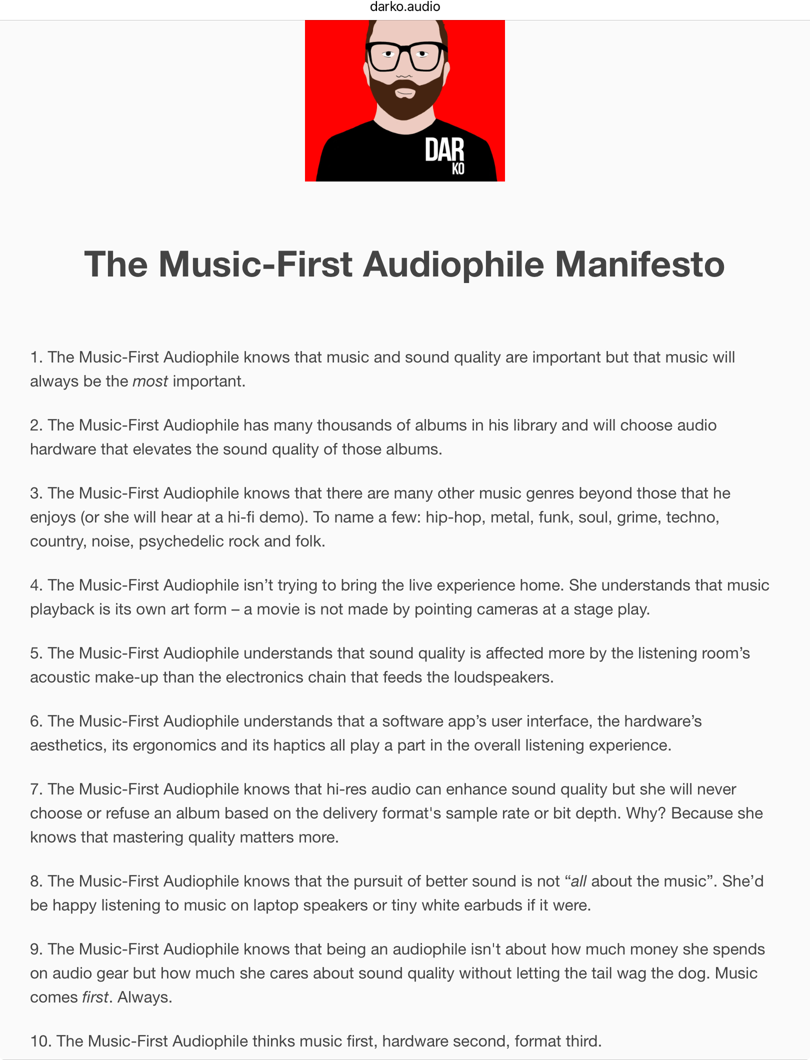 The Music-First Audiophile knows that music and sound quality are important but that music will always be the most important.