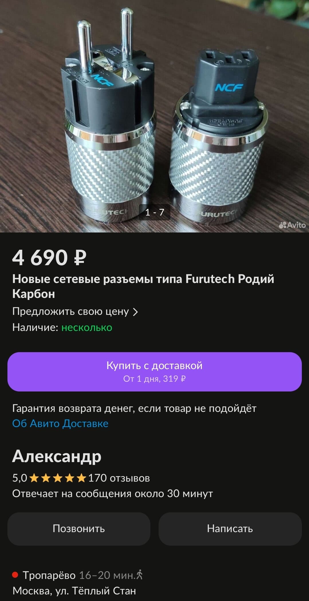Это моя переписка с этим “продавцом”, там куда более показательные фото есть, например, когда на вилке Audioquest, вдруг обнаруживается “FURUTECH”… ![]()