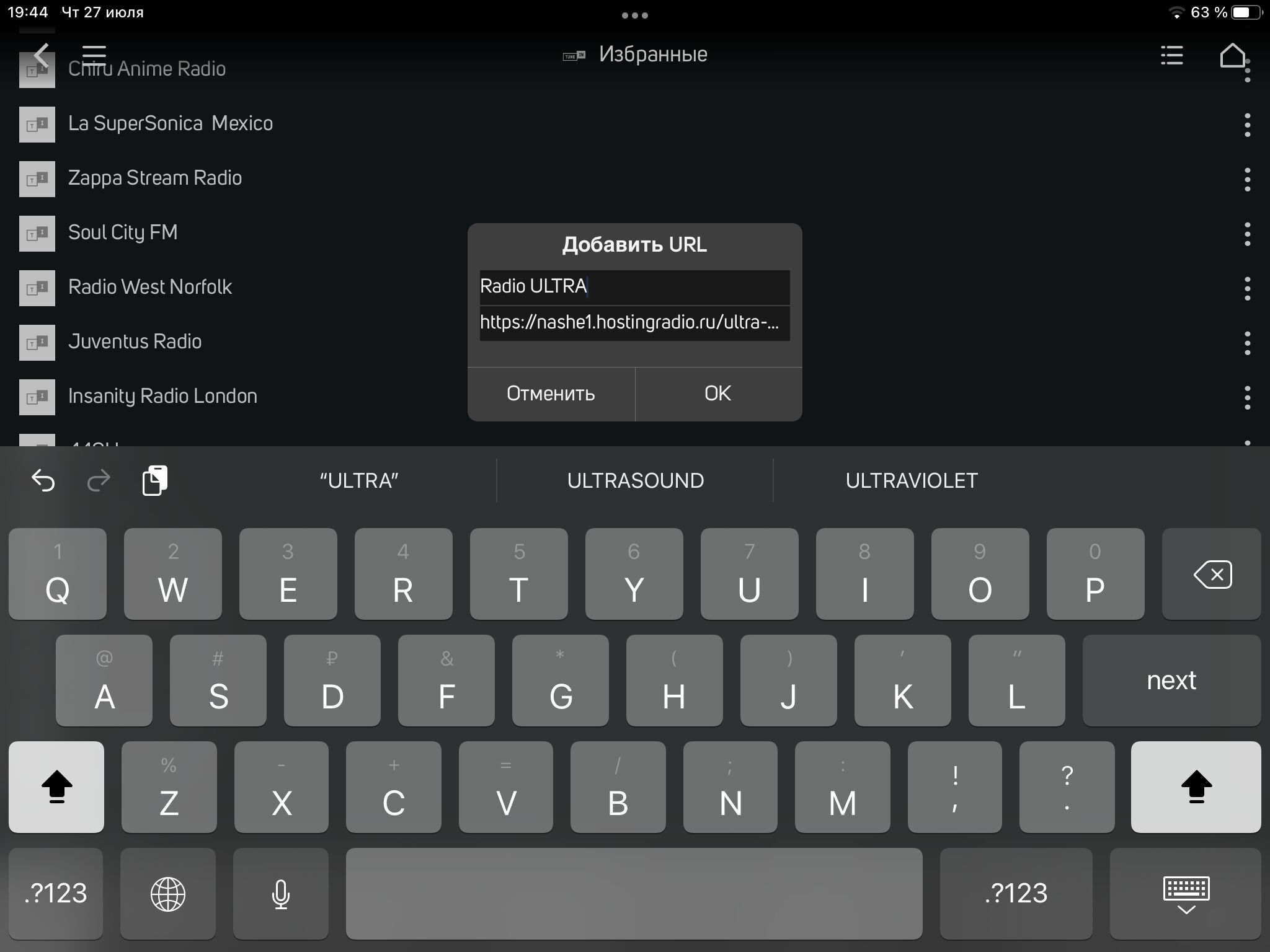 Я с айфона смог установить через URL только одну радиостанцию из пяти.