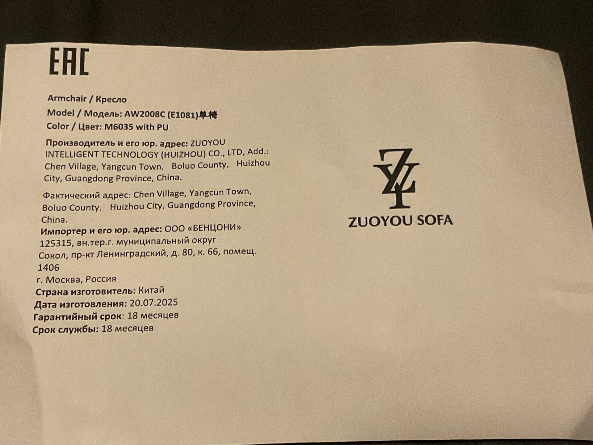 Если в изделии выявлен заводской брак, ремонт производится производителем за свой счёт.