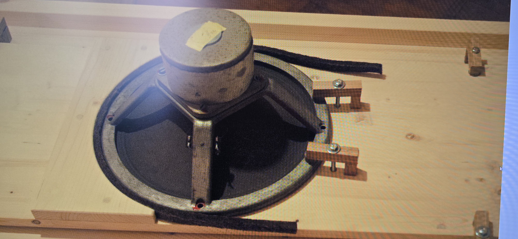 Да это наверное один из самых типовых вариантов классического крепления для щита, Я тоже почти так же делал, динамик крепится отдельно на массивную стойку (общую для НЧ и СЧ), а НЧ щит просто надевается на него, без крепления совсем. Эскизная конструкция в целом, но работало вполне.