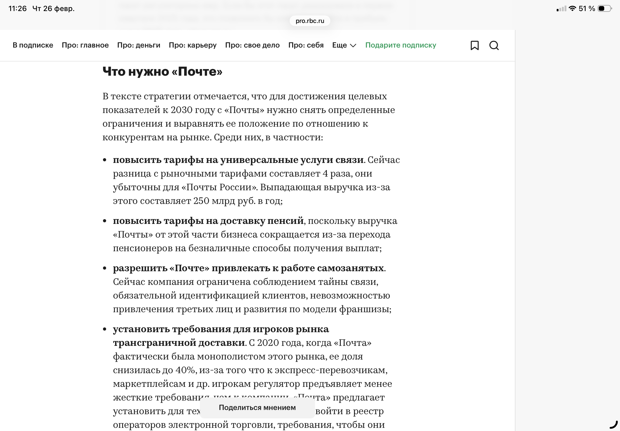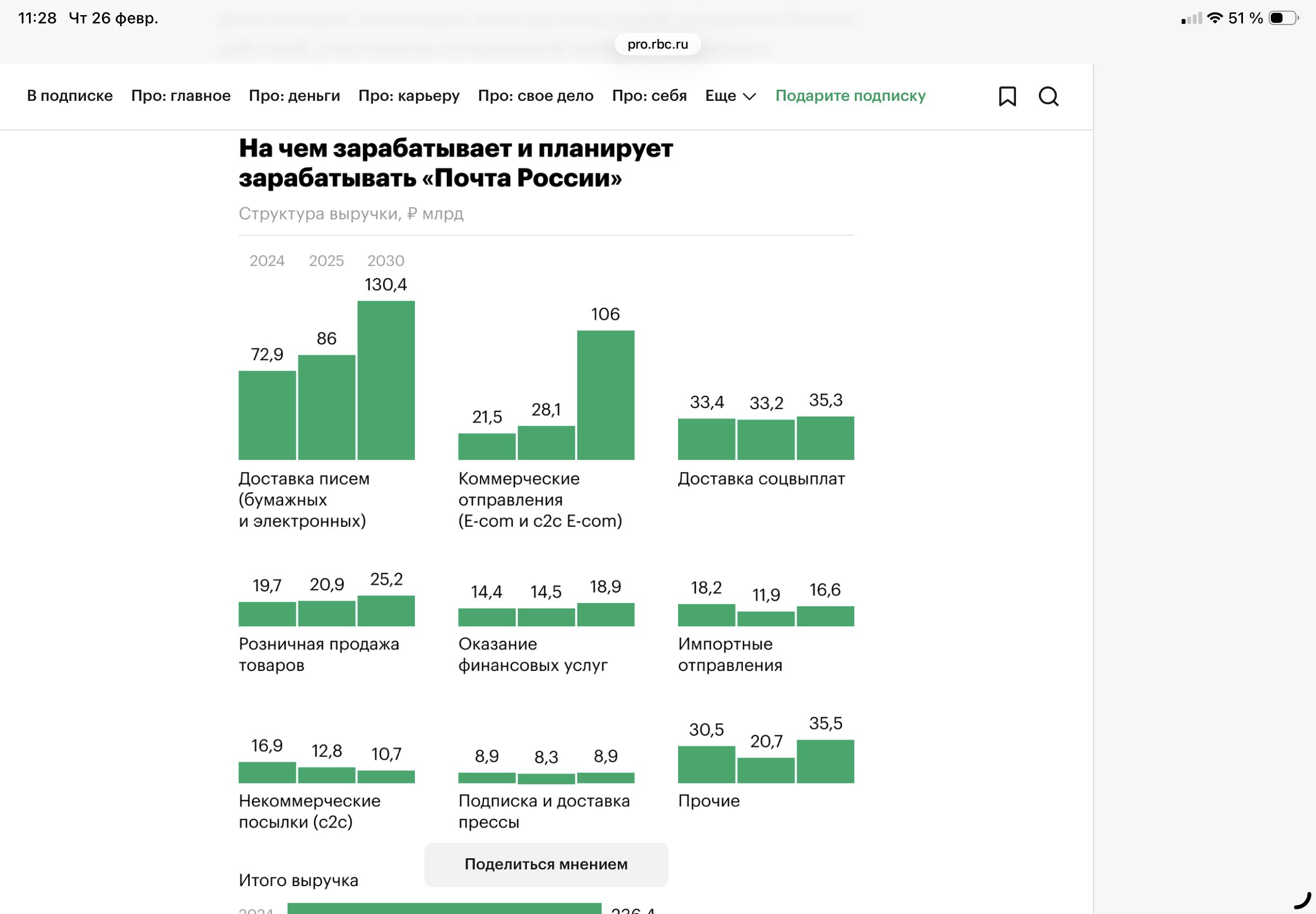 Я обсудил эту проблему с таксистом, и мы предлагаем следующую программу развития. Пусть повышают цены на посылки и письма в 4 раза. Пусть перестанут выдавать пенсии и принимать коммунальные платежи - бабушки с таким же успехом могут в Сбере в очереди постоять. Пусть перестанут торговать всякой фигней. Останется только профильная деятельность. Будет достаточно меньшего количества маленьких отделений, как ПВЗ маркетплейсов с минимумом сотрудников с нормальной зарплатой. Излишки площадей продать/сдавать в аренду. На вырученные деньги можно содержать “социальные” отделения в деревнях, где реально больше ничего нет.