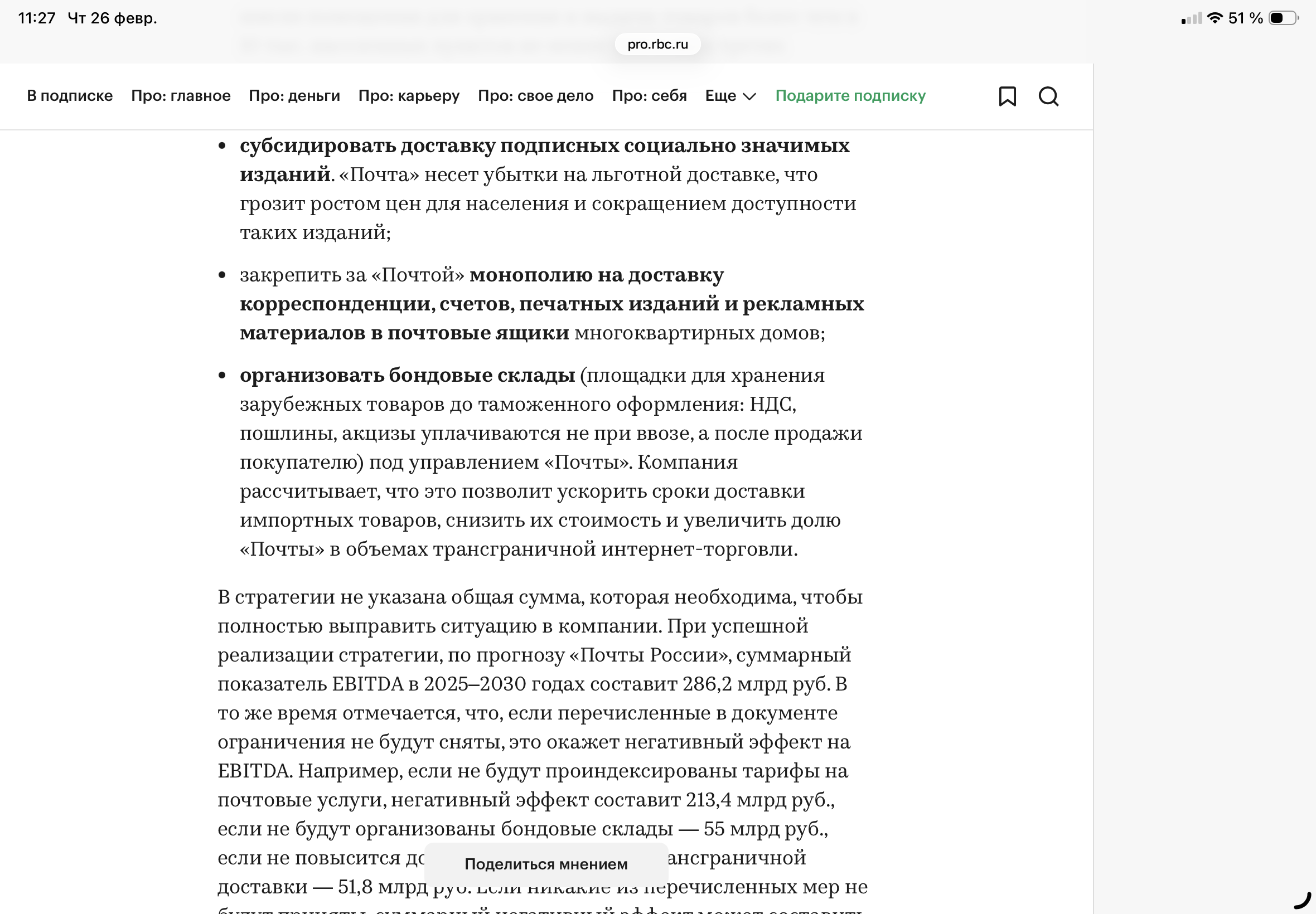 И если почти все, что сейчас делают убыточно, то на чем в плюс-то выходить? Еще 80% выручки останется от околоубыточных услуг.