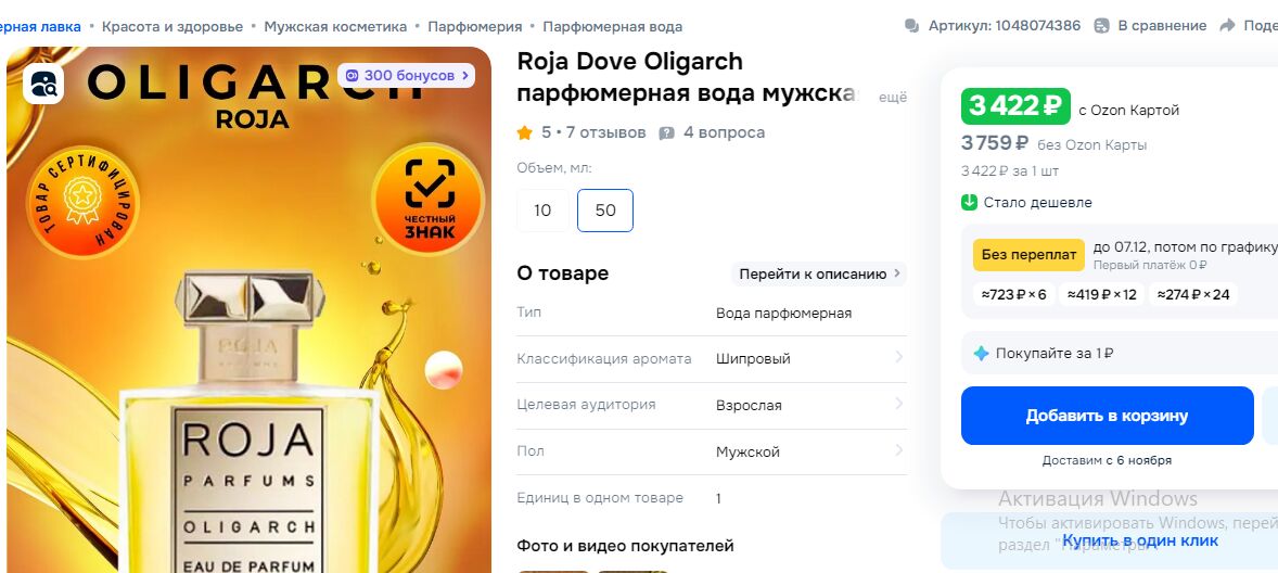 Рожа Голубя - Олигарх 50мл за 3400Р. Это тот который давно снят с пр-ва и его хрен найти даже за 100 тр. ?!