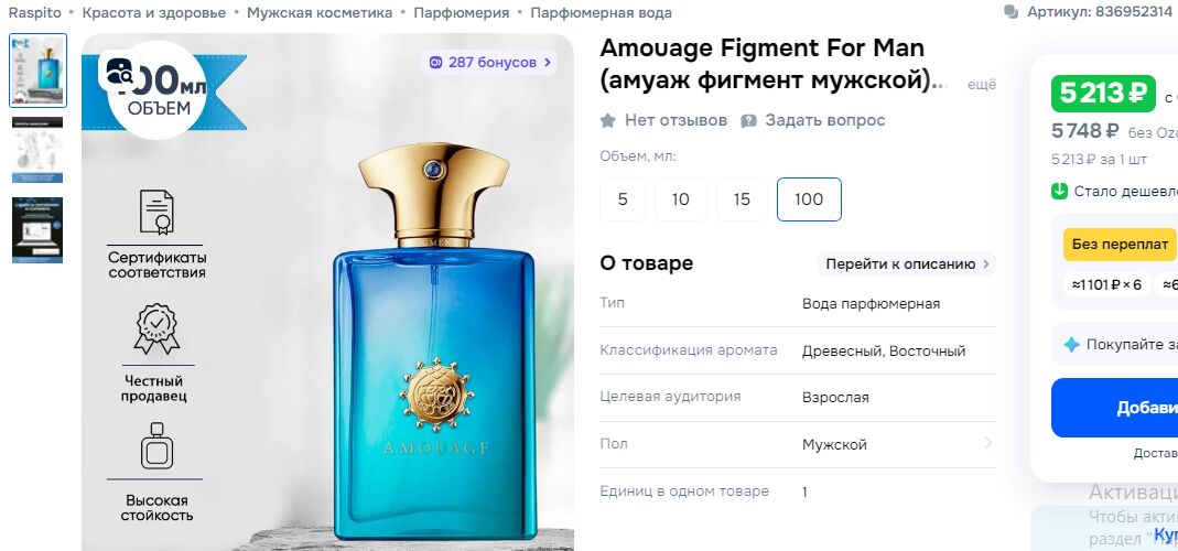 В переходах между метро (там ещё продают и циганщину в золотых флаконах на разлив по 120 р./мл.) видел всю эту касотень (и амуаж и прочее) по 3400 р за любую сотку. Лучше уж там взять.