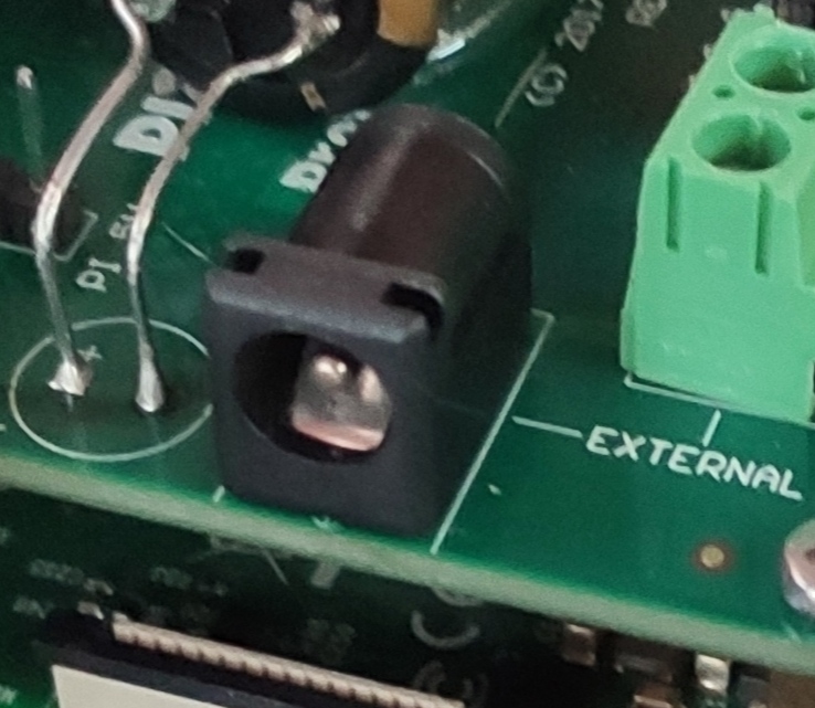 Это разъем питания под 2.5 мм штекер, запараллеленный с зеленой колодкой. Но 2.5 будет скорее всего болтаться, контакт будет ненадежным. Судя по отсутствующей перемычке для питания малины, если это ваше фото, вы питаете 502-ю через зеленую зажимную колодку. Так и оставляйте.