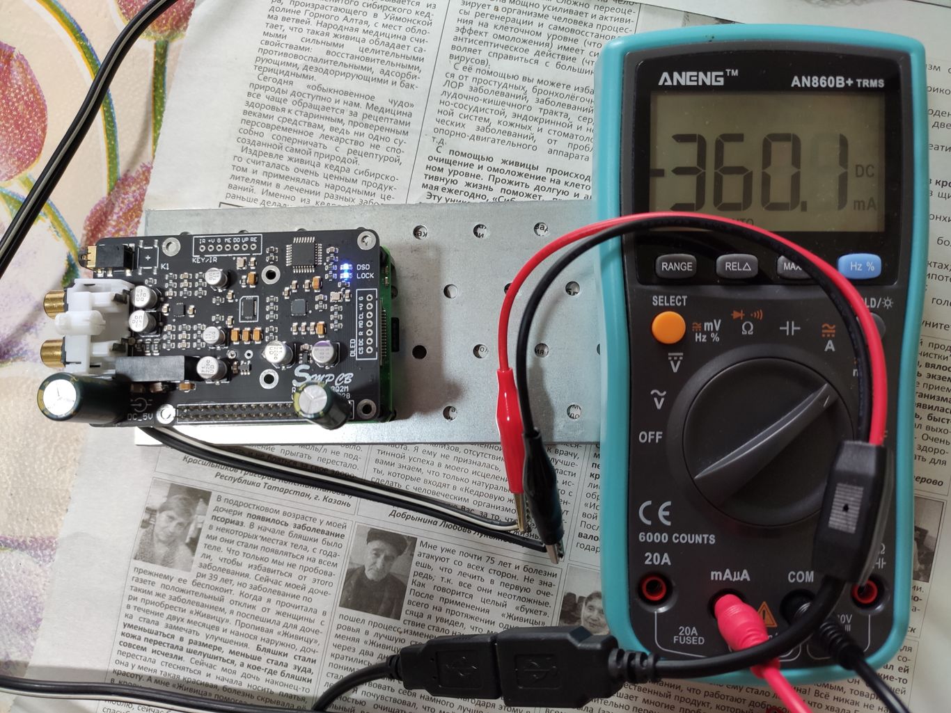 RPi 3A+, шляпа ESS9038Q2M и microSD карта 64 гига, воспроизведение DSD с карты. Пиками потребление возрастало до больше 0,6А, так как предел измерения был до 0,6А и мультик попискивал о превышении предела. Но при воспроизведении флаков, мп3 и прочего интернет радио пиков потребления мульт не фиксировал. Система YoctoAP 2.05 В конфиге