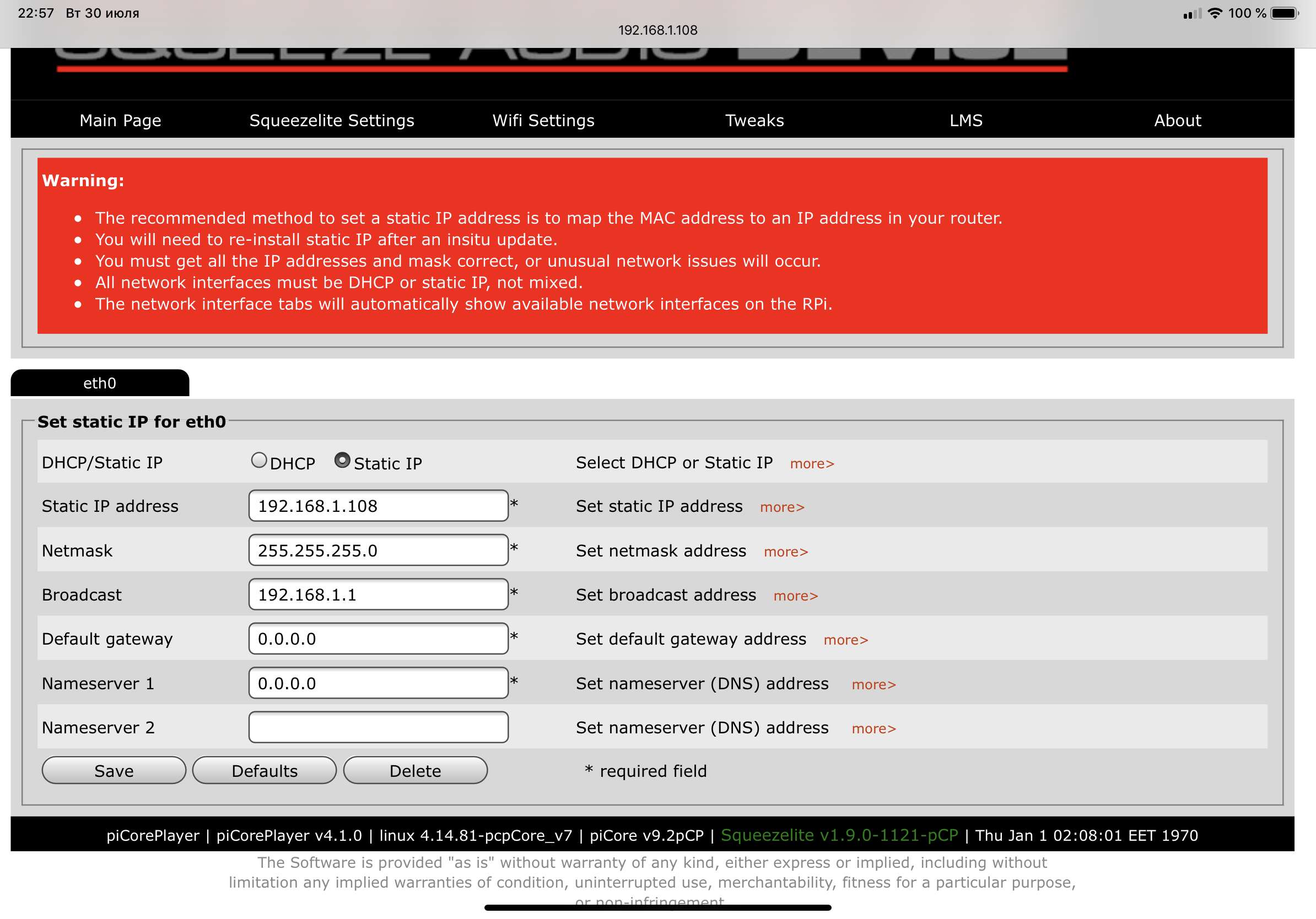 Кроме скрина настроек в PiCore, посмотреть бы скрины настроек И роутера И моста, по части IP-адресов в локальной сети…