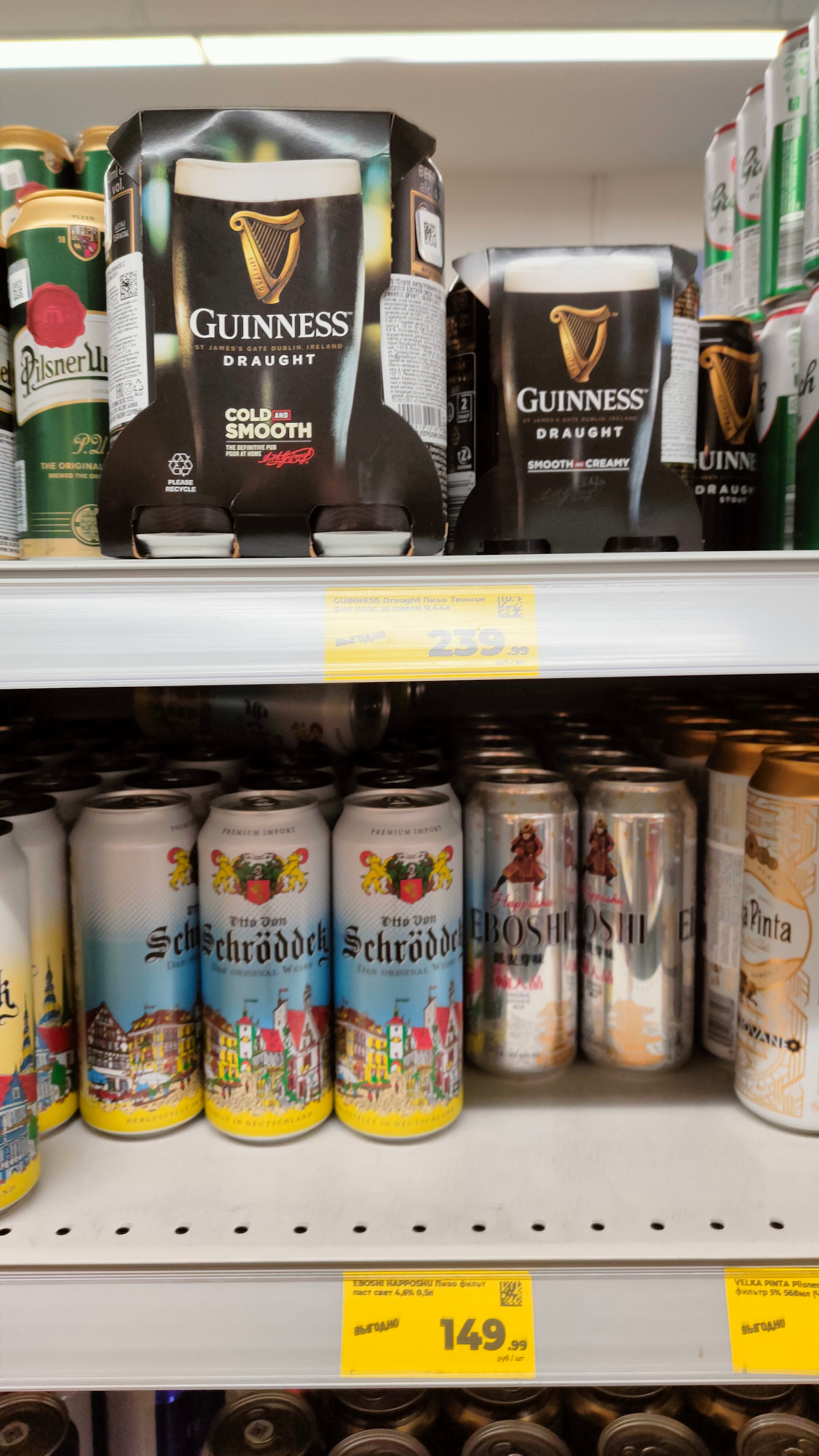 Будучи в Тамбове в местном Дикси или типа того купил 8 банок Гинесса, на меня как на дурака смотрели и еще переспросилиьна кассе видел ли я цену. Короче вода водой..