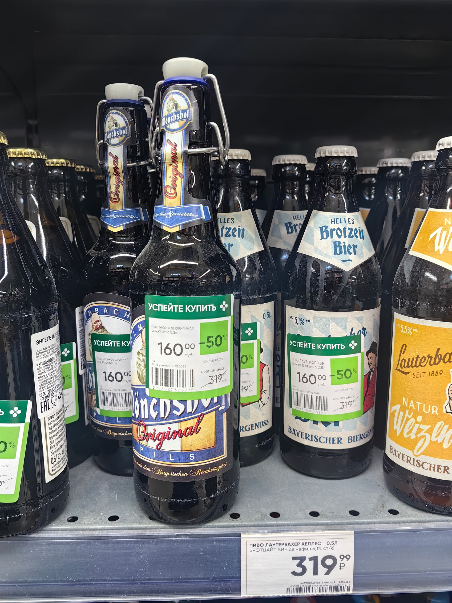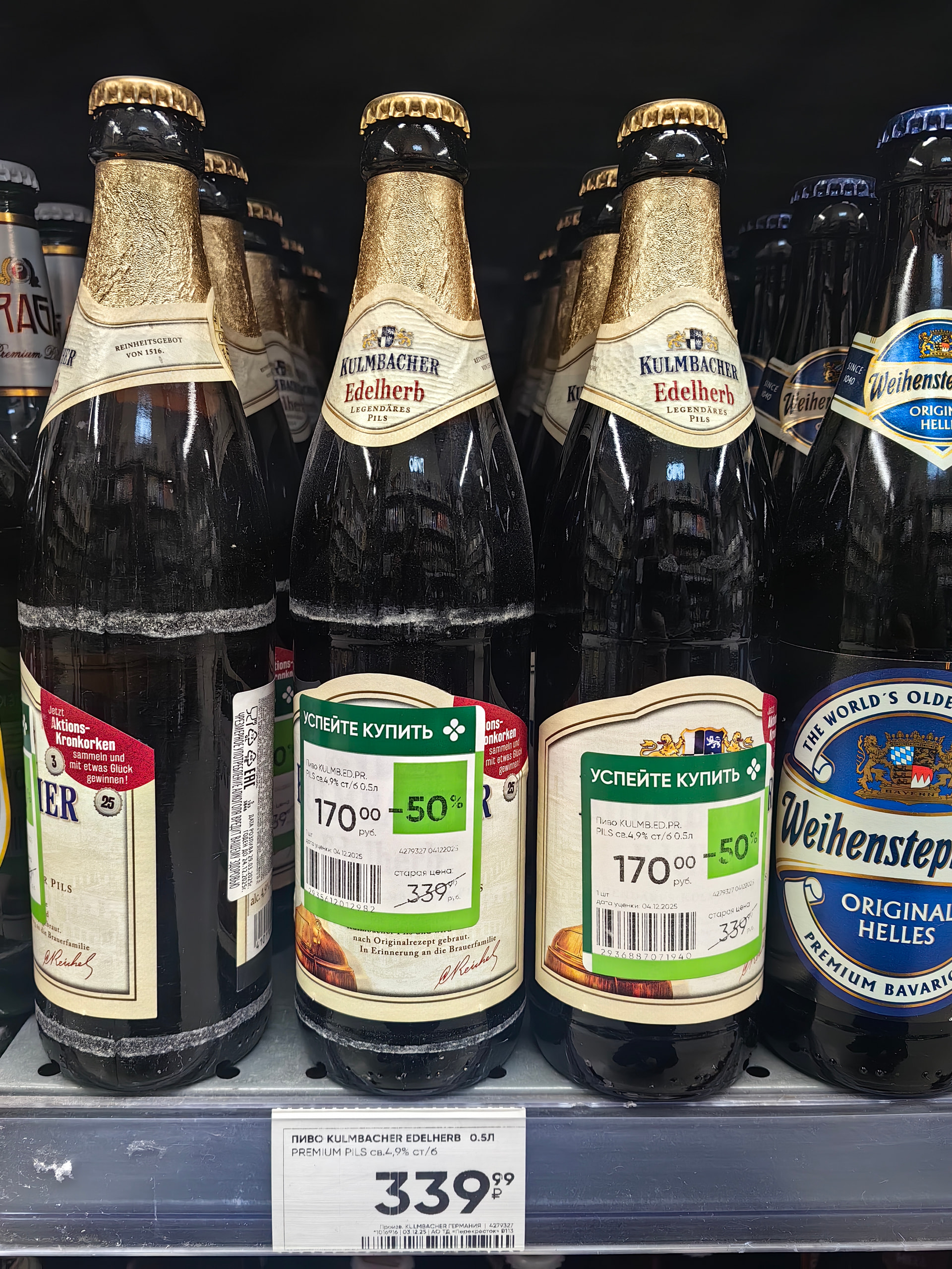 Приложение не показывает скидку по белому ценнику, это как правило уже второе снижение цены и оно видно непосредственно в магазине. У меня в пешей доступности 6 перекрестков, у каждого своя специфика по скидкам. Так же не плохой вариант для бельгийской классики ps. Tripel 199р