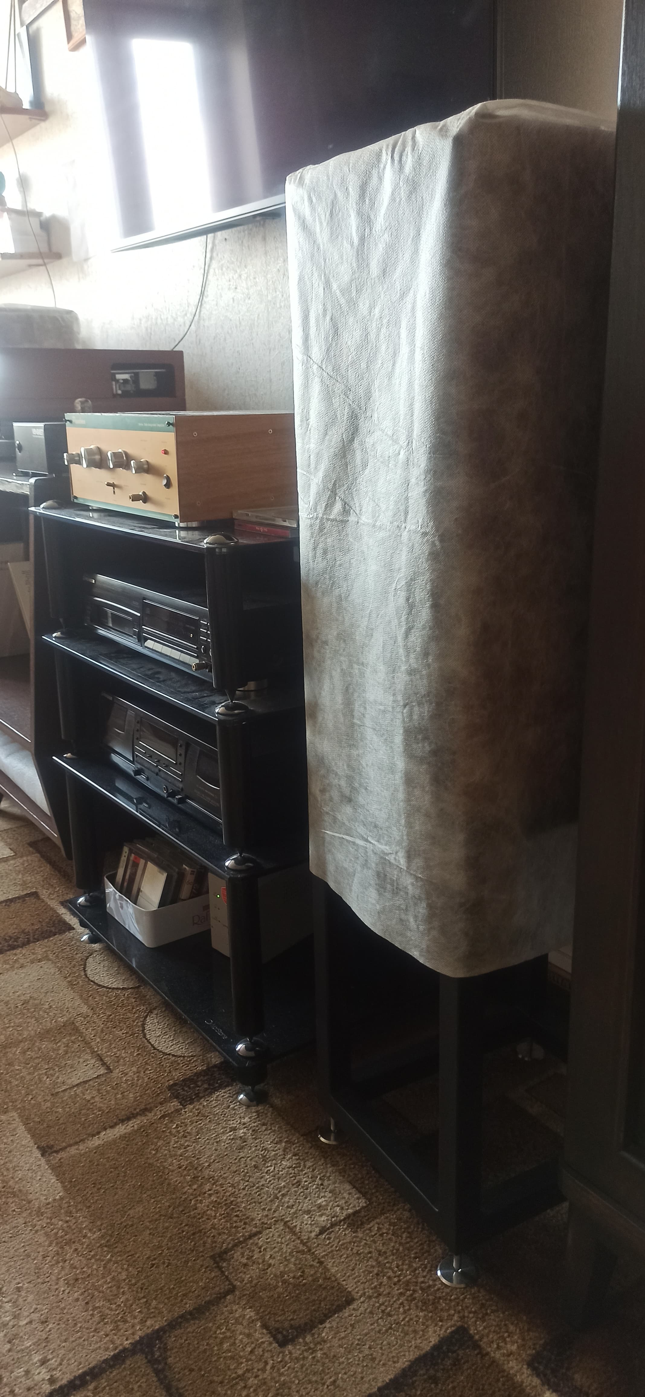 упаковочной коробке. Владельцы других АС самостоятельно делают подобные чехлы. Считаю, что таким образом можно уберечь шпон от воздействия солнечных лучей и от излишнего “затирания” в процессе избавления от пыли. Встречал чехлы из велюра