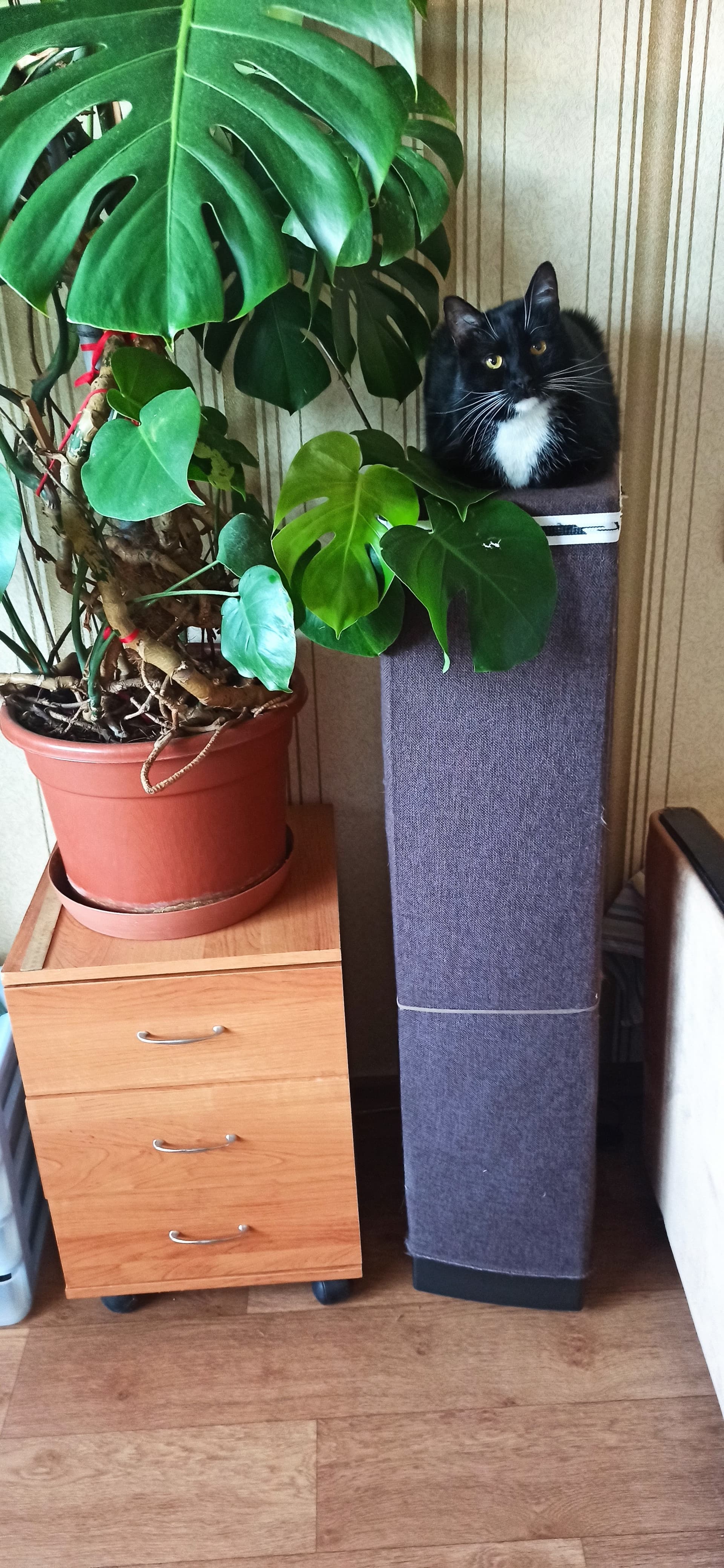 Любимая животинка возлегает на одних АС. В то время пока на других, более дорогих АС не было чехлов, она играясь и оступившись пыталась удержаться на ней и оставила глубокую царапину на лаке аж до шпона