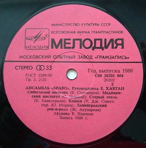 Звук. Не заметил существенных различий при переходах от трека к треку. Качество записи (стерео!) на твёрдую 4+. М.б. и ещё лучше, но слушал через не лучшую вертушку, в сети 180v (поэтому, через стабилизатор).