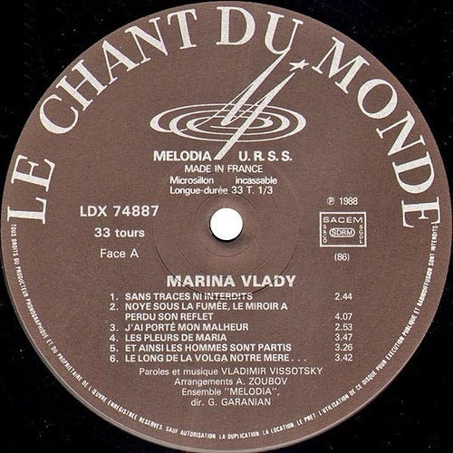Вот нашел у себя новый. Студийная запись со всеми вытекающими. По-моему редкий. Был бонусом вложен в конверт с пластинкой Высотского. Может лежит у кого конверт лишний?