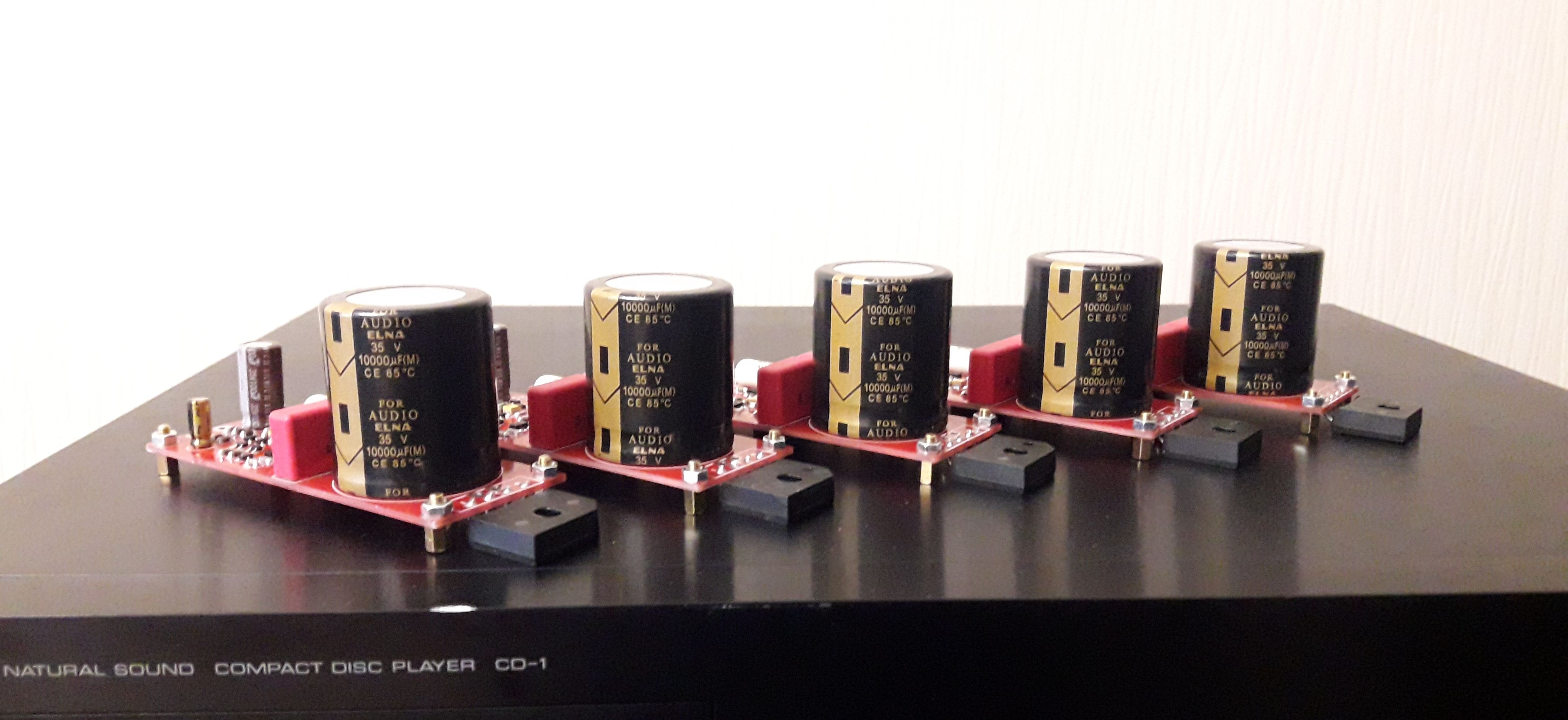 Решил распродать оставшиеся 3 амперные платки, в связи с чем настроил их все на 5 вольт, и впаял по входу электролиты “Elna for audio”, а по выходу “Elna silmic”. Осталось всего 4 платы: