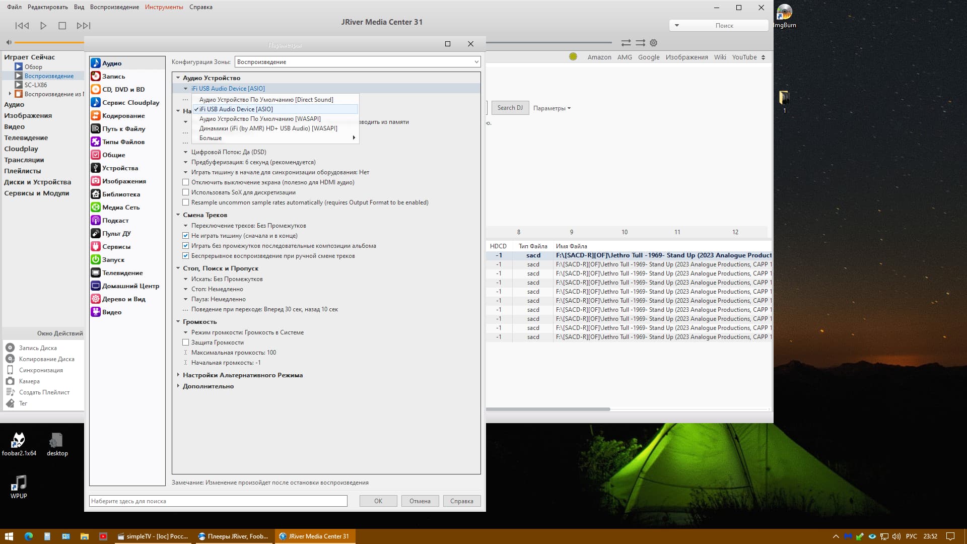 тогда в настройках Foobar выбираете выход JRiver ASIO и играете. Тут дело вкуса.