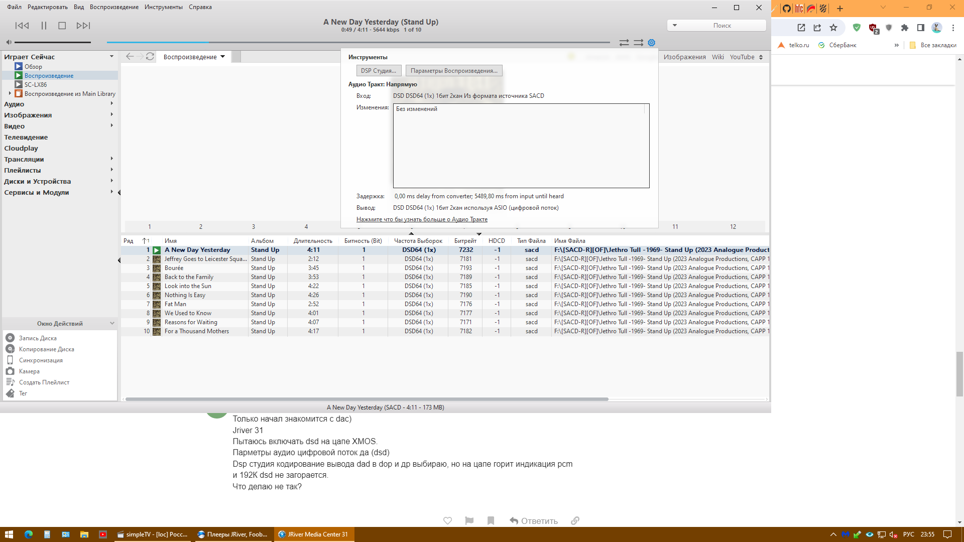 Пытаюсь включать dsd на цапе XMOS.