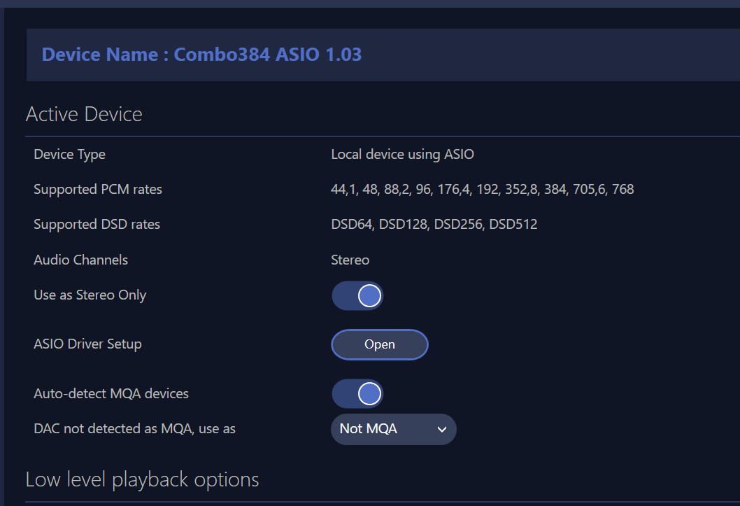 Наиболее оптимизированный модуль вывода в аплеере для Windows выбирается в конфигураторе ap2config.exe как EXTRAS ASIO. У него отдельная панель настроек asio_x64_config.exe, которая становится доступна после выбора. Там, если включить режим Full Memory, единственным активным программным потоком в процессе воспроизведения остаётся выполняемый код самого драйвера ASIO. Возможность плеера привнести некий джиттер исключается тем, что он сам фактически не работает при этом.