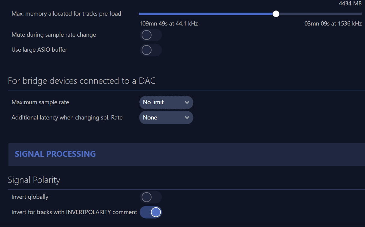 - Привести тестируемых к единому знаменателю, в котором они дают bit perfect передачу данных (без внутренней регулировки громкости, DSP, апсемплингов и т.п.) - настройки на самом деле не сложные и зачастую по умолчанию имеют место