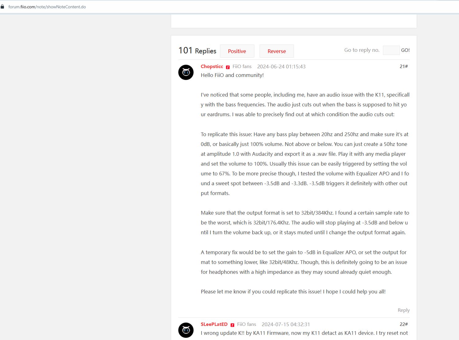 Я заметил, что у некоторых людей, включая меня, проблемы со звуком в K11, особенно с низкими частотами. Звук просто отключается, когда басы должны ударять по барабанным перепонкам. Мне удалось точно определить, при каких условиях звук отключается: