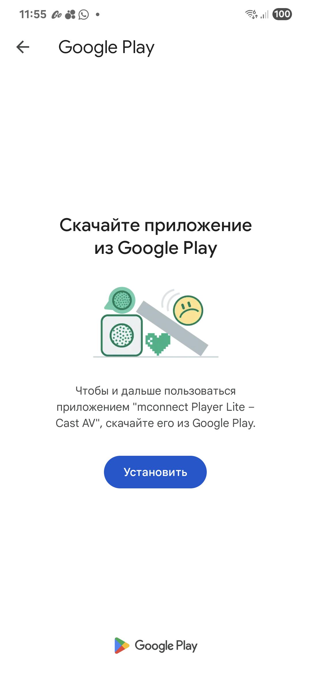А у меня ещё и проблема с mConnect - если установить из ApkPure , не запускается, висит плашка как на скрине.