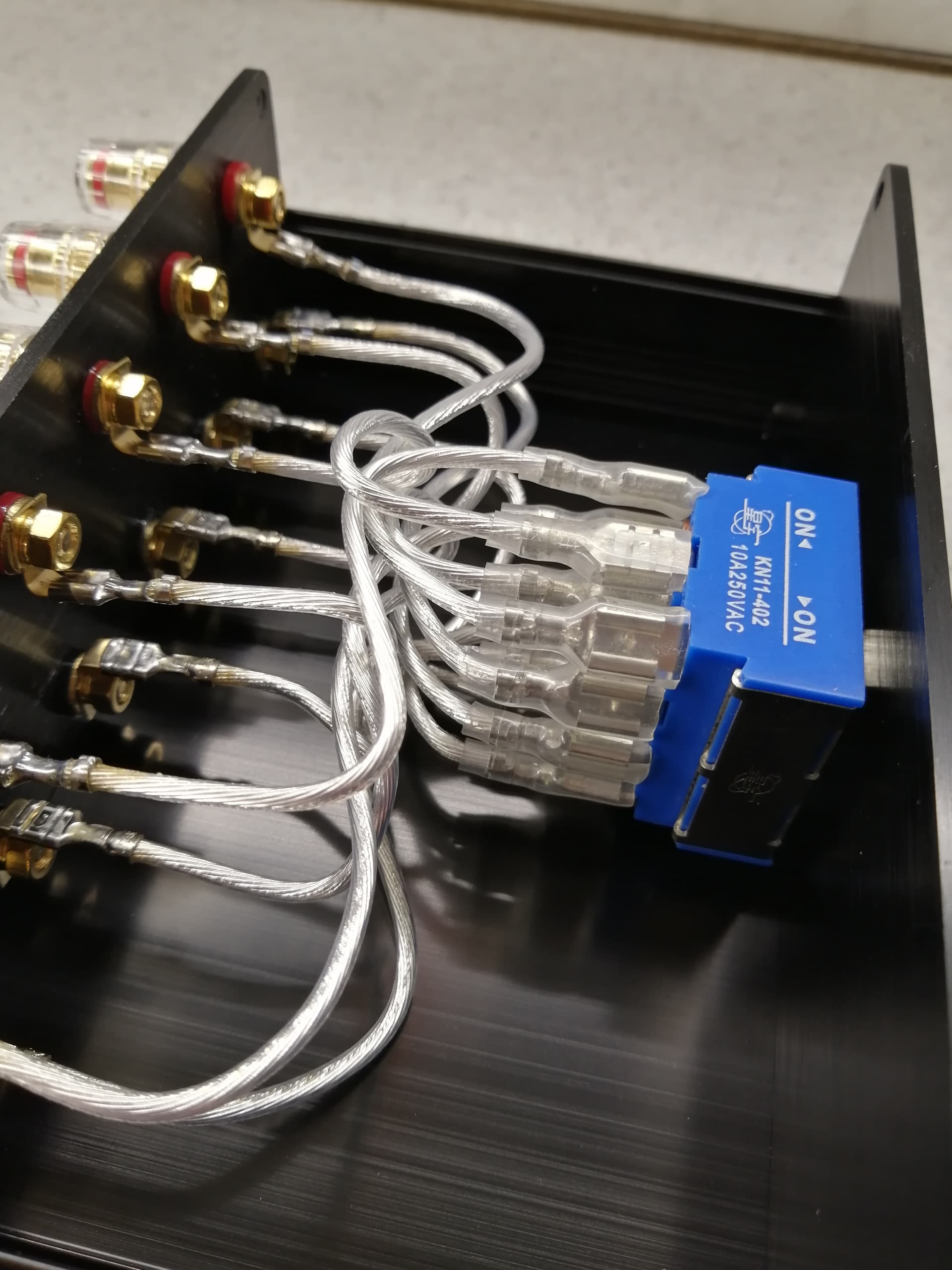 На Али купил такой переключатель. Подключил ресивер и усилитель к одной паре колонок. Посеребренные провода 2.5 кв.мм. Полезная вещь. У переключатель нет среднего (нейтрального) положения, поэтому перед переключение нужно источники выключать.
