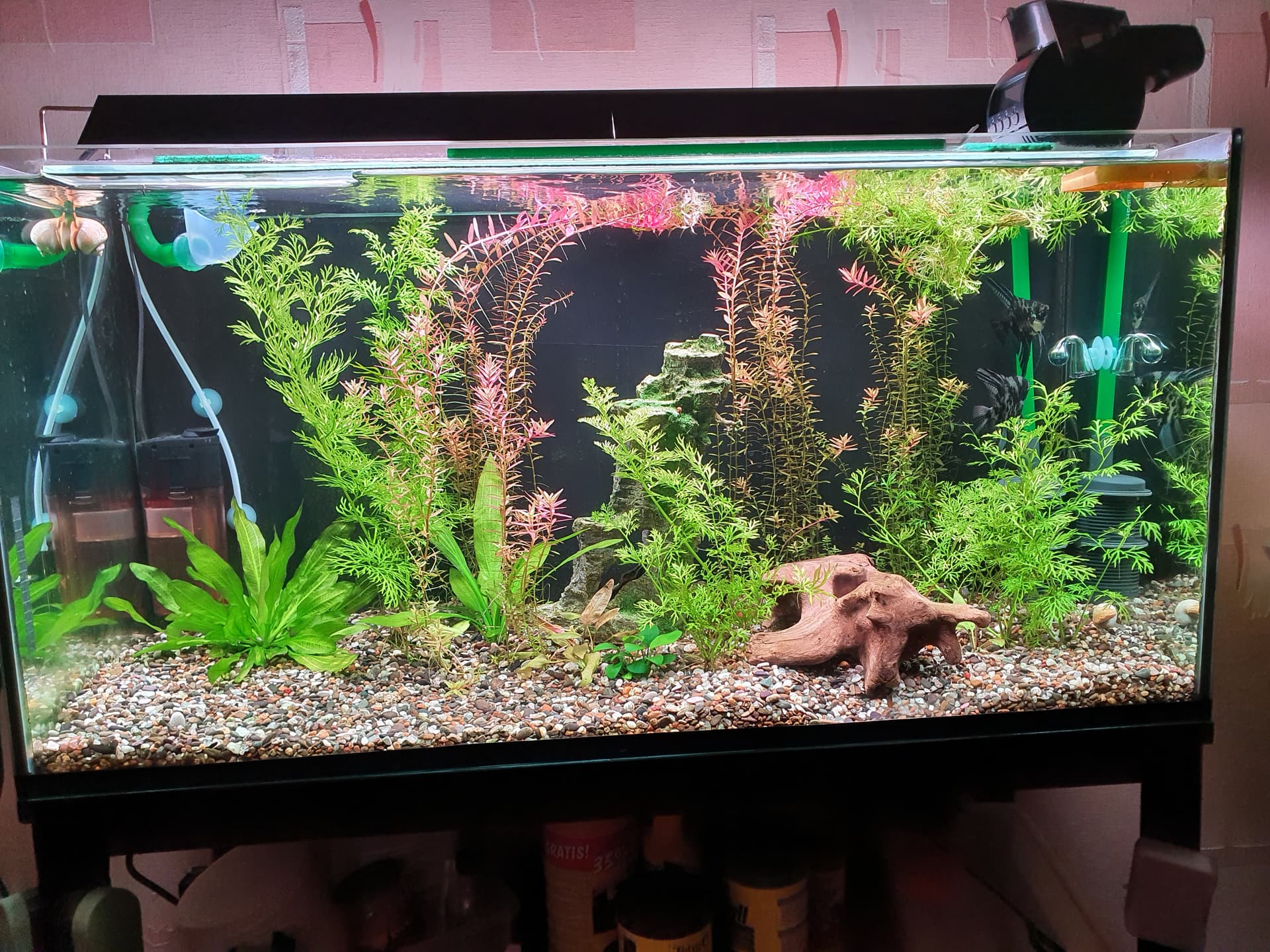 Тоже есть пару аквариумов) Один на 140л, другой маленький, литров на 20.
