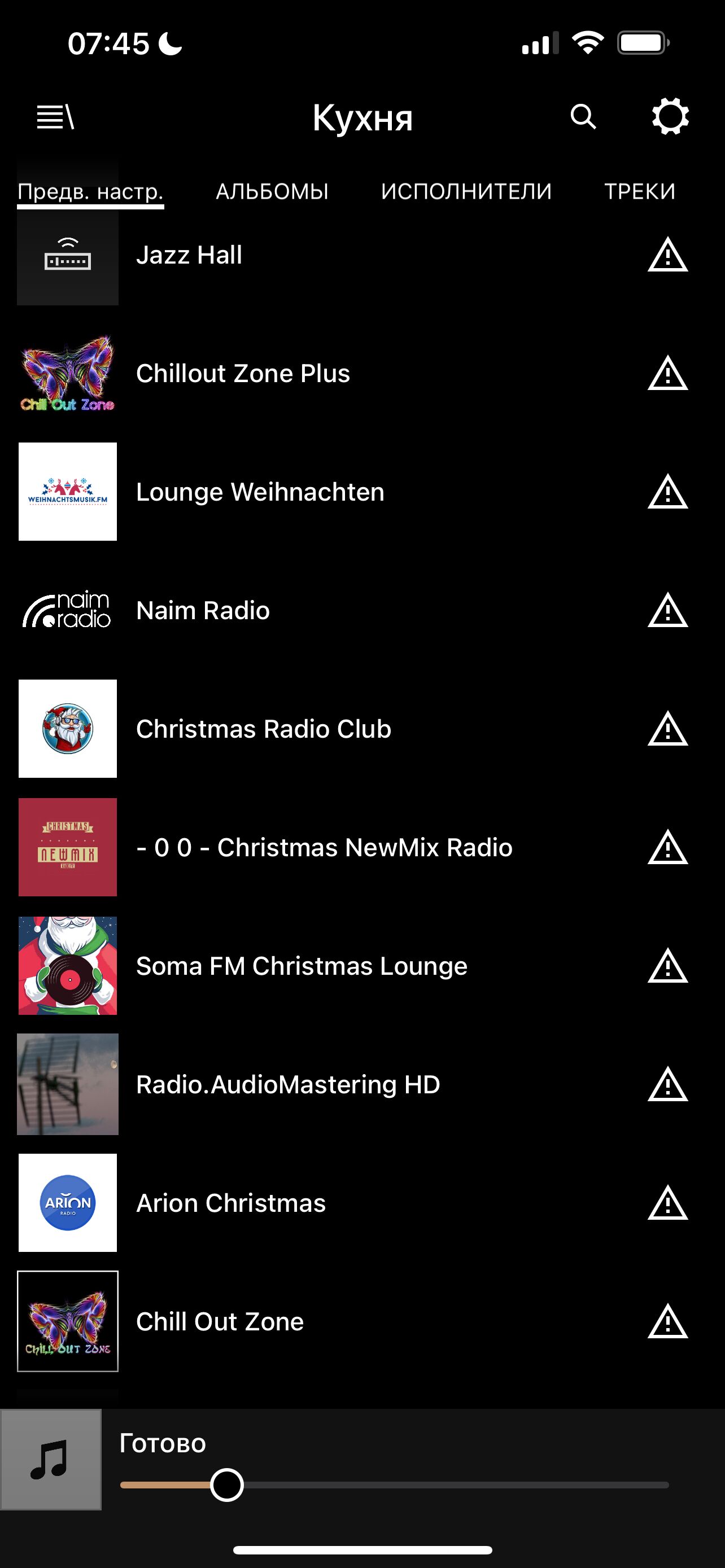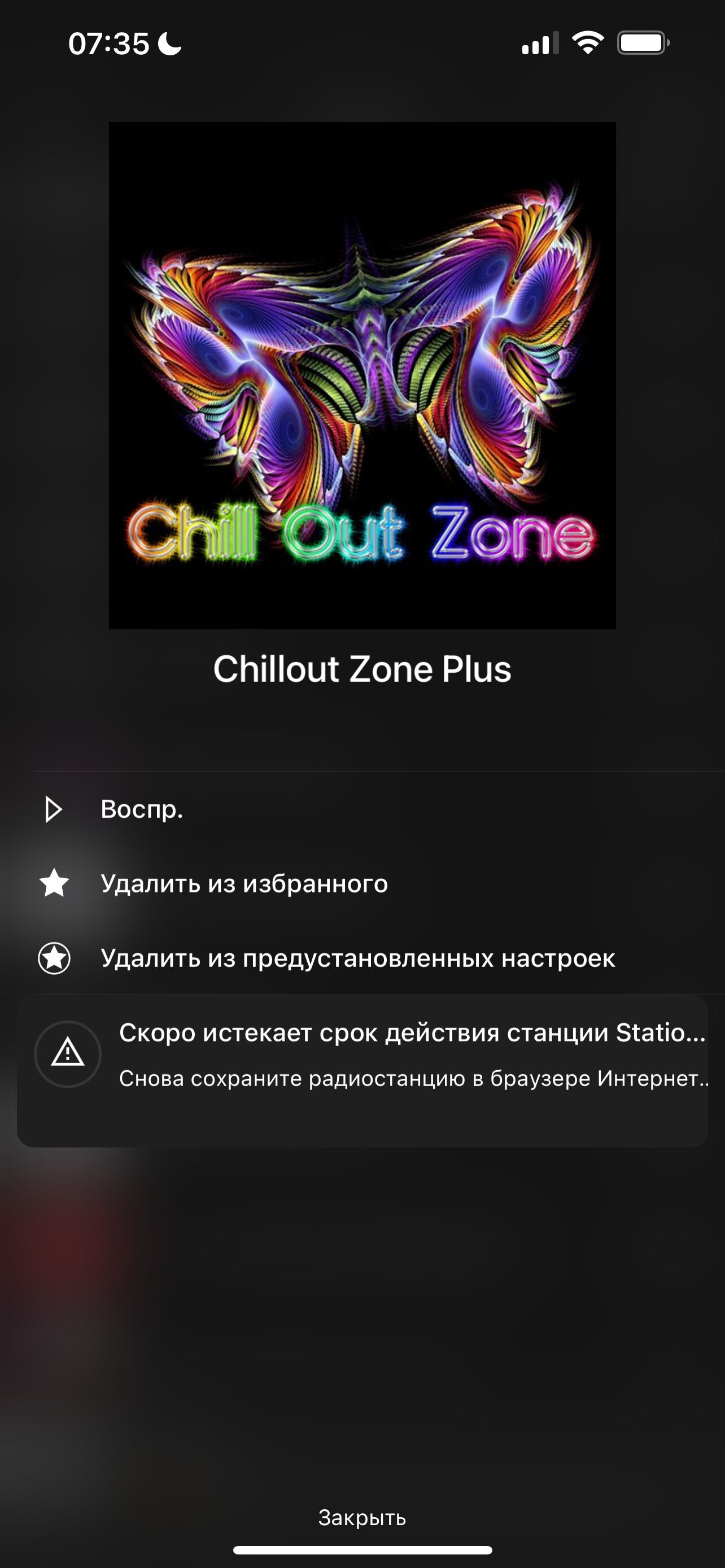 В режиме выбора избранных интернет-радиостанций приложение найм начало выдавать сообщение: